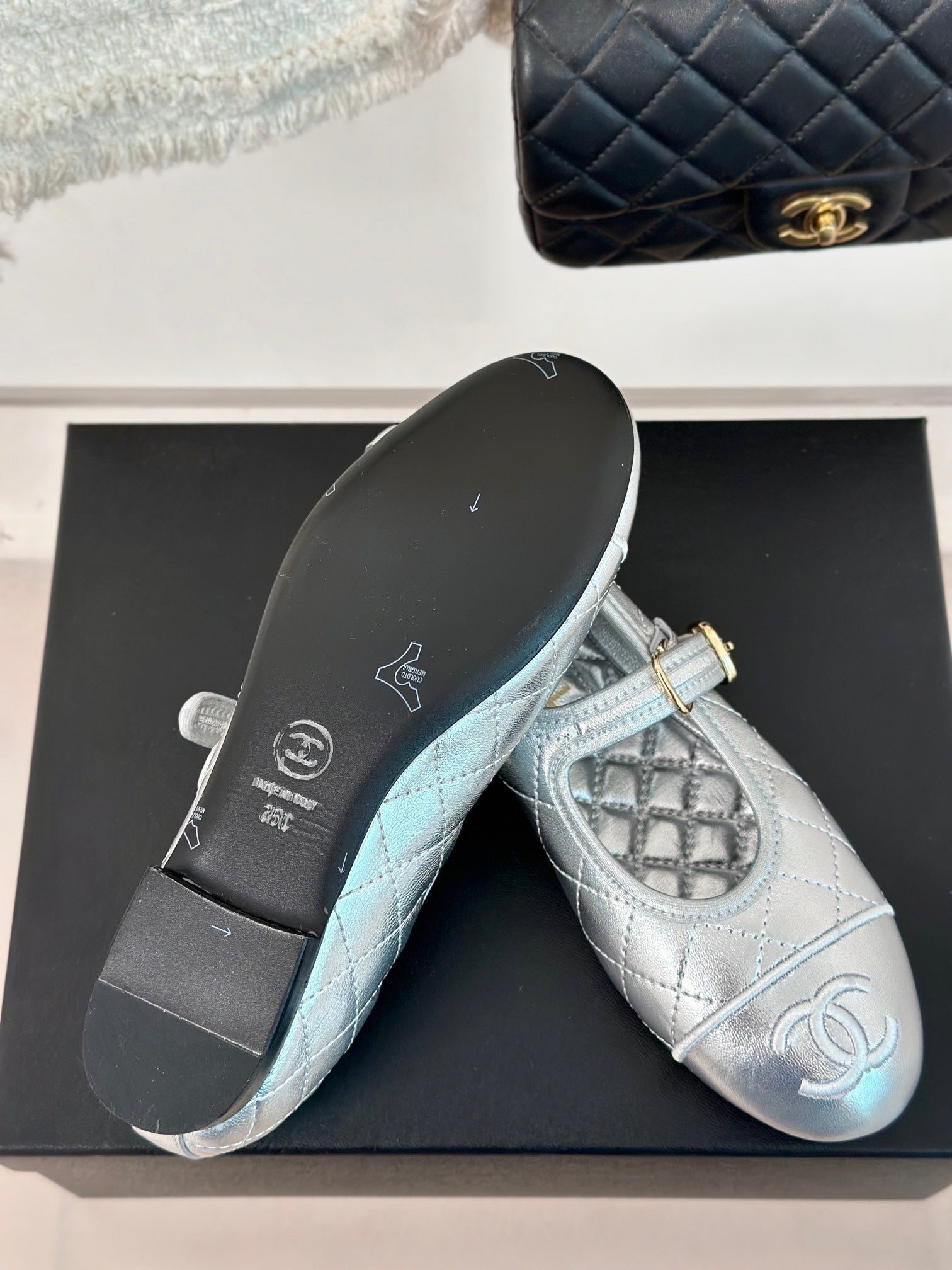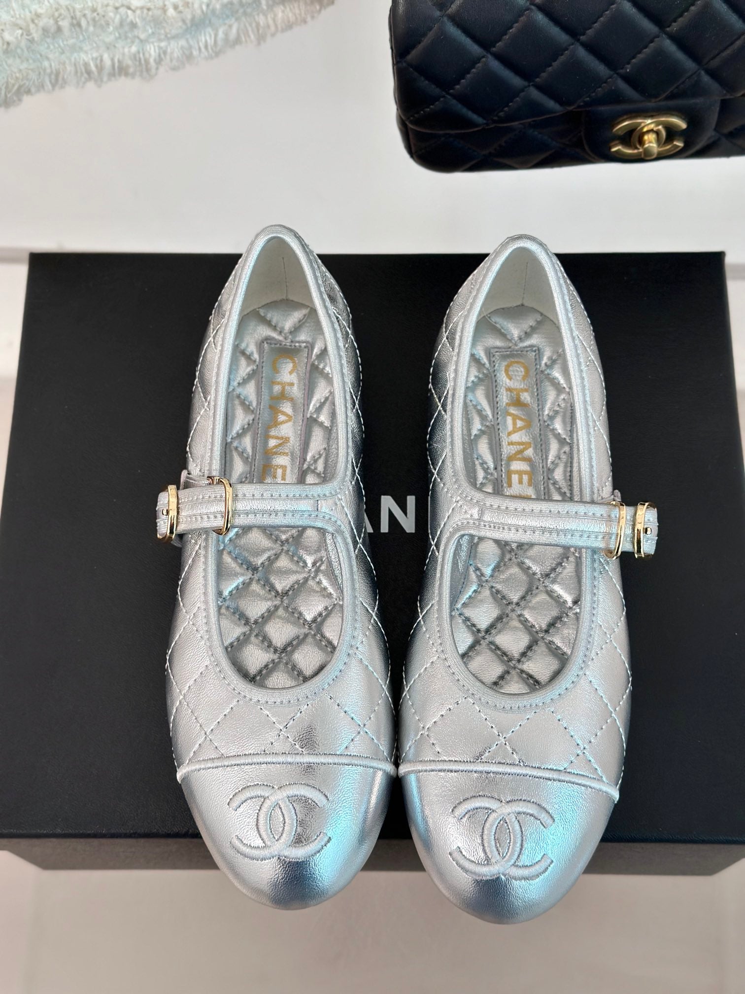 mary jane silver metalic quilted lambskin