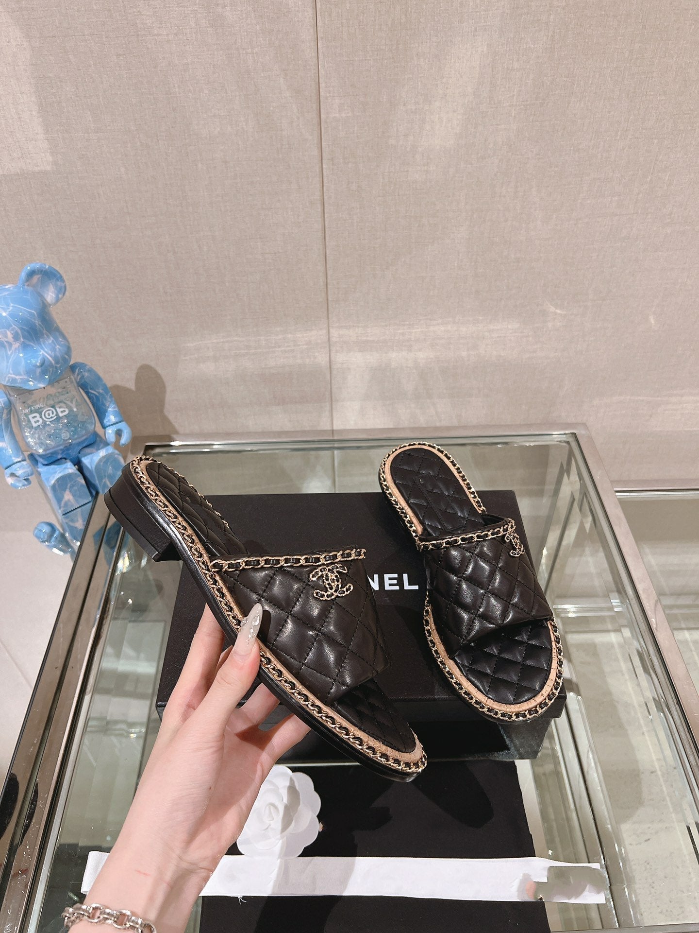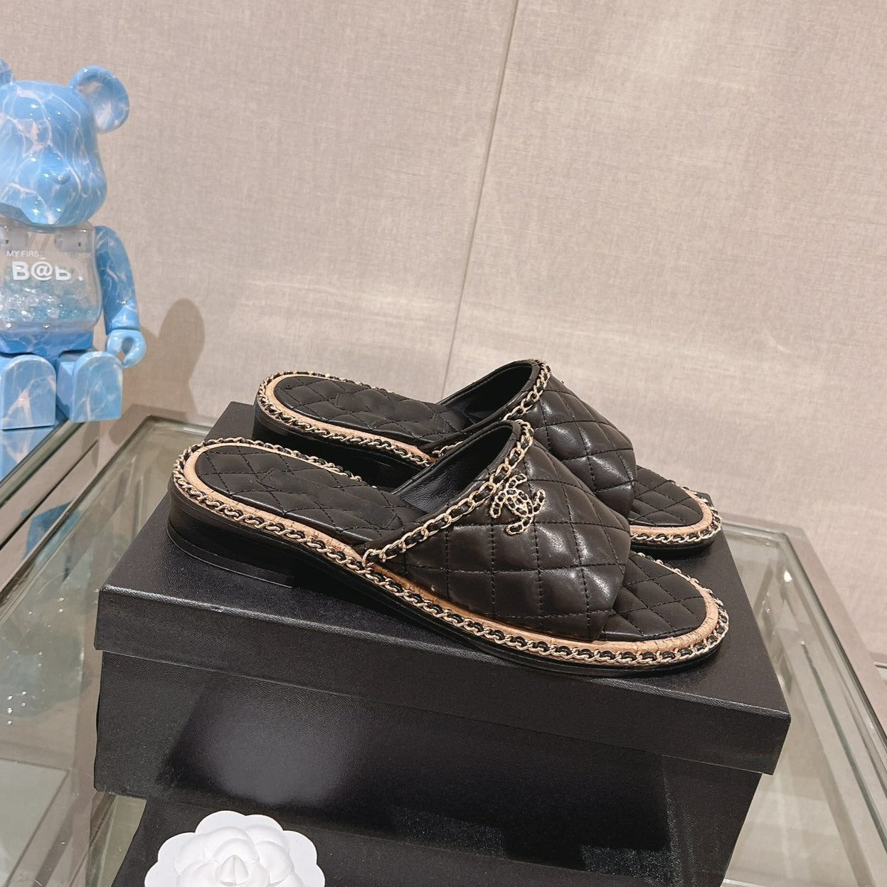 mule sandal 30 black quilted lambskin