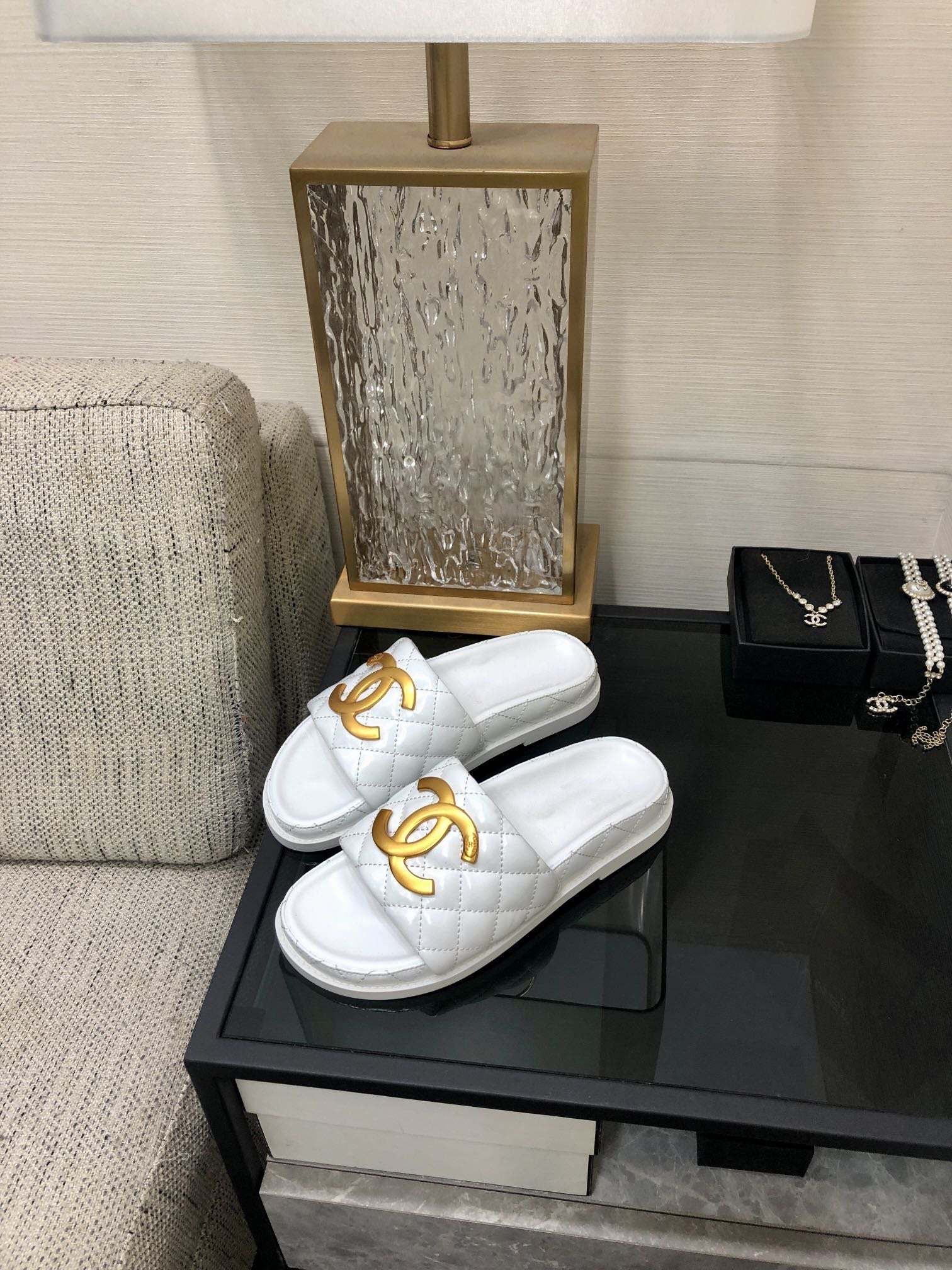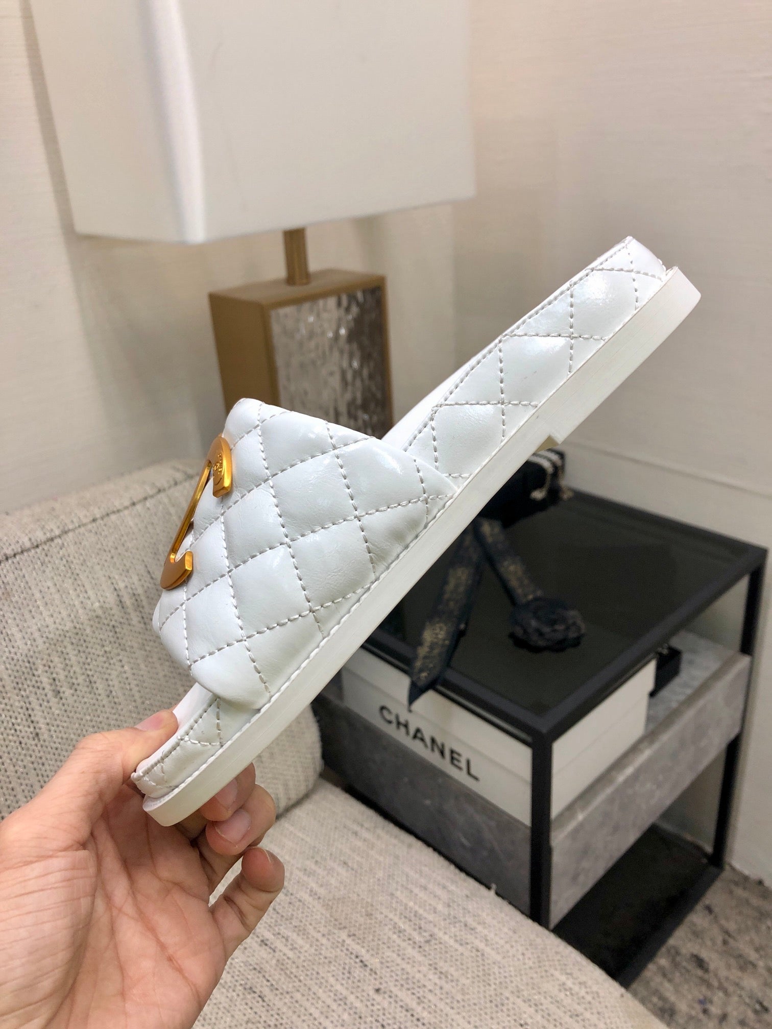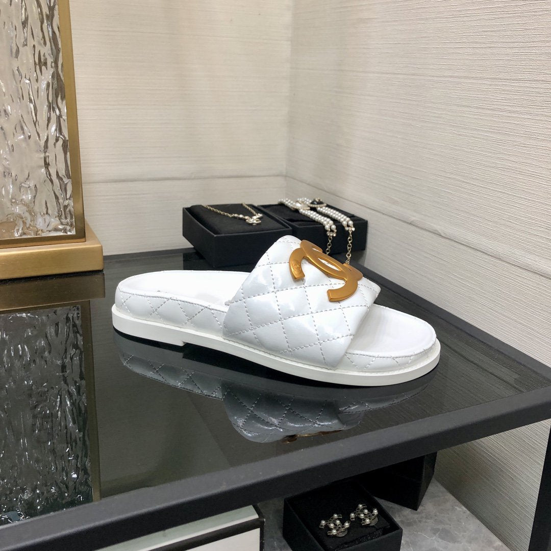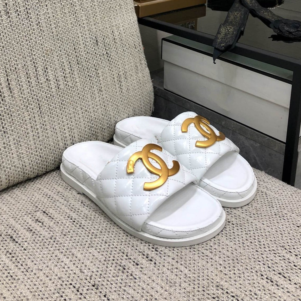 mule sandal 30 white quilted waxed leather