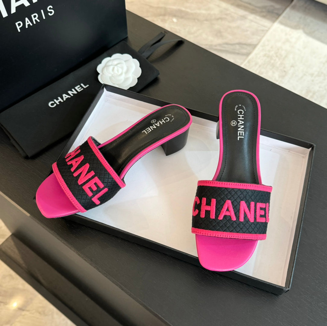 mule sandal 45 black pink fabric embroidery