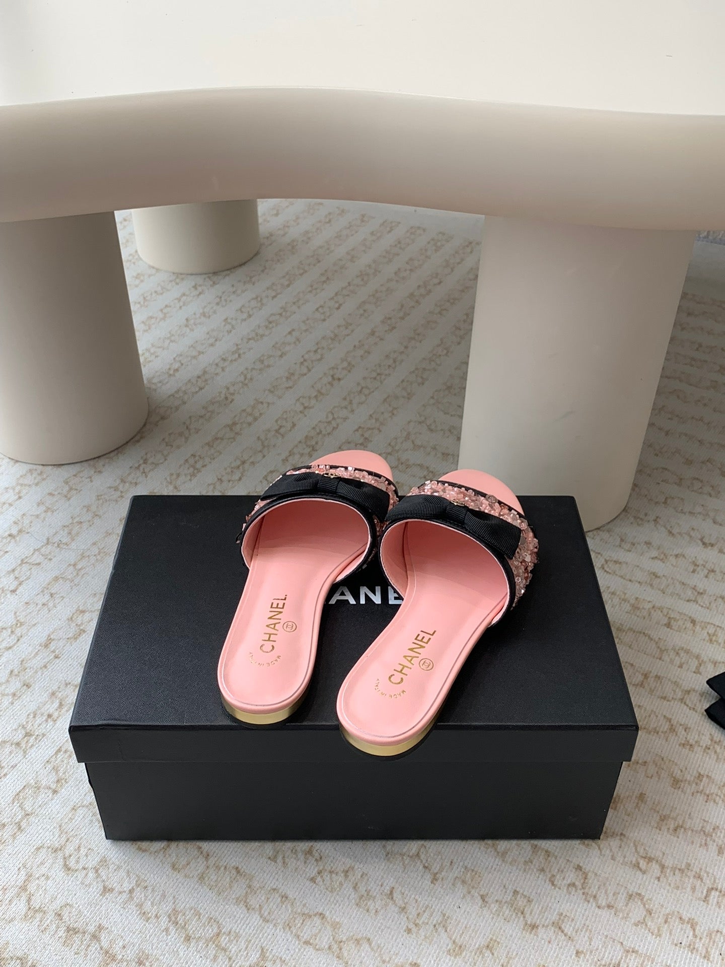 mule sandal pink calfskin glitter sequin
