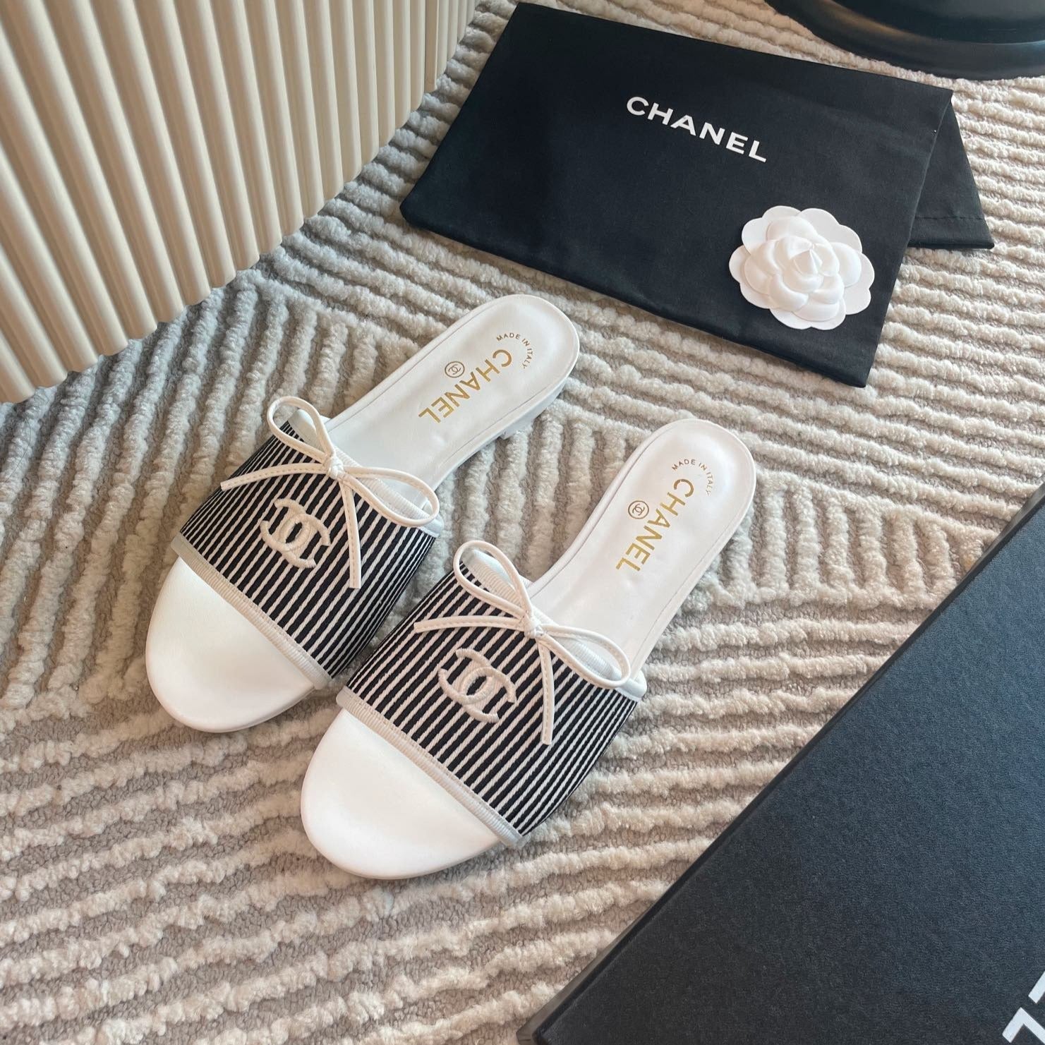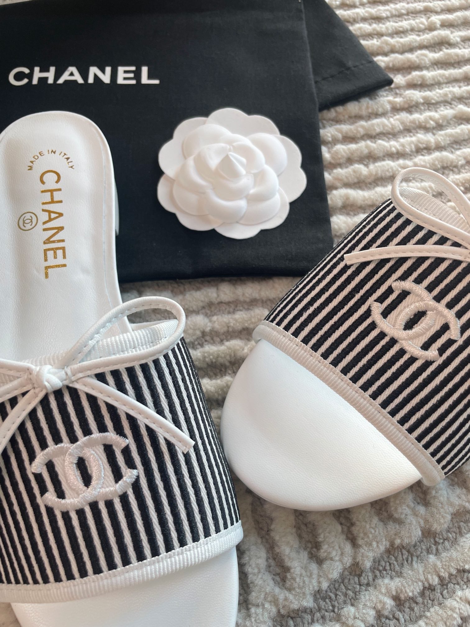 mule sandal white black embroidered fabric calfskin