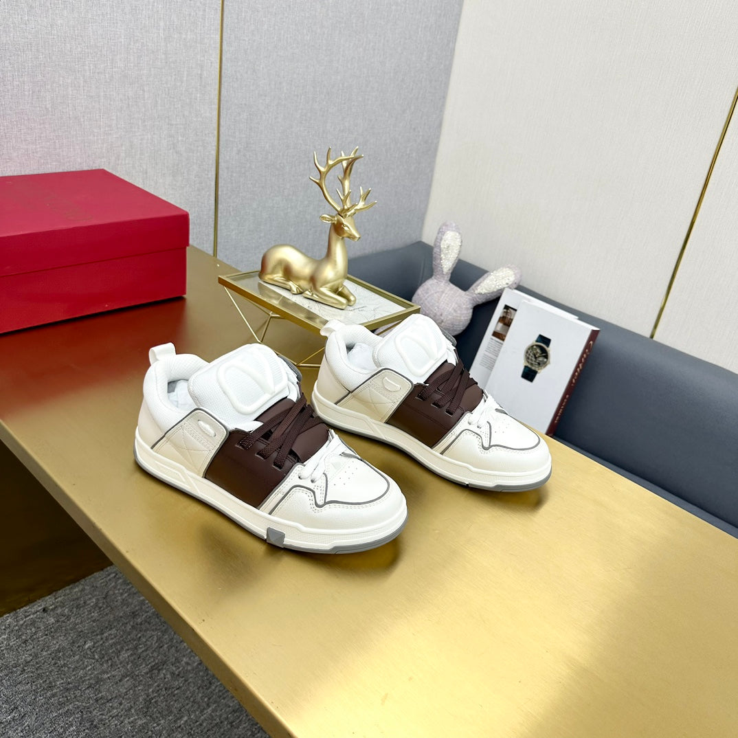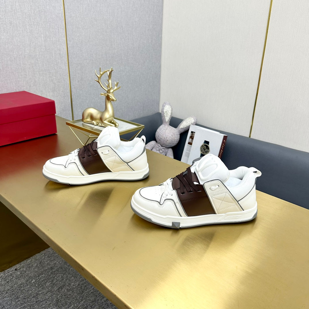 One Stud Sneaker Garavani Calfskin Fabric Brown White