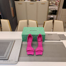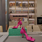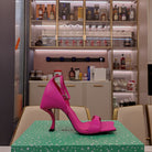 OPEN-TOE CURVED HIGH HEEL SANDALS IN DEEP PINK SMOOTH CALFSKIN