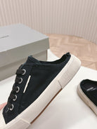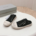 PARIS MULES IN BLACK DESTROYED DENIM AND RUBBER