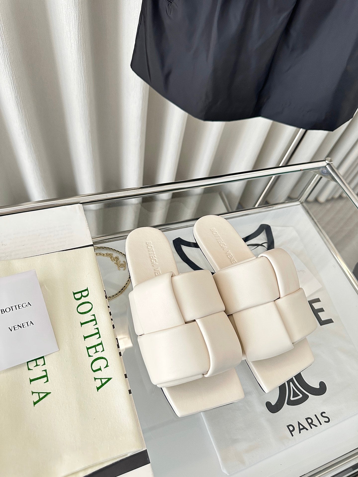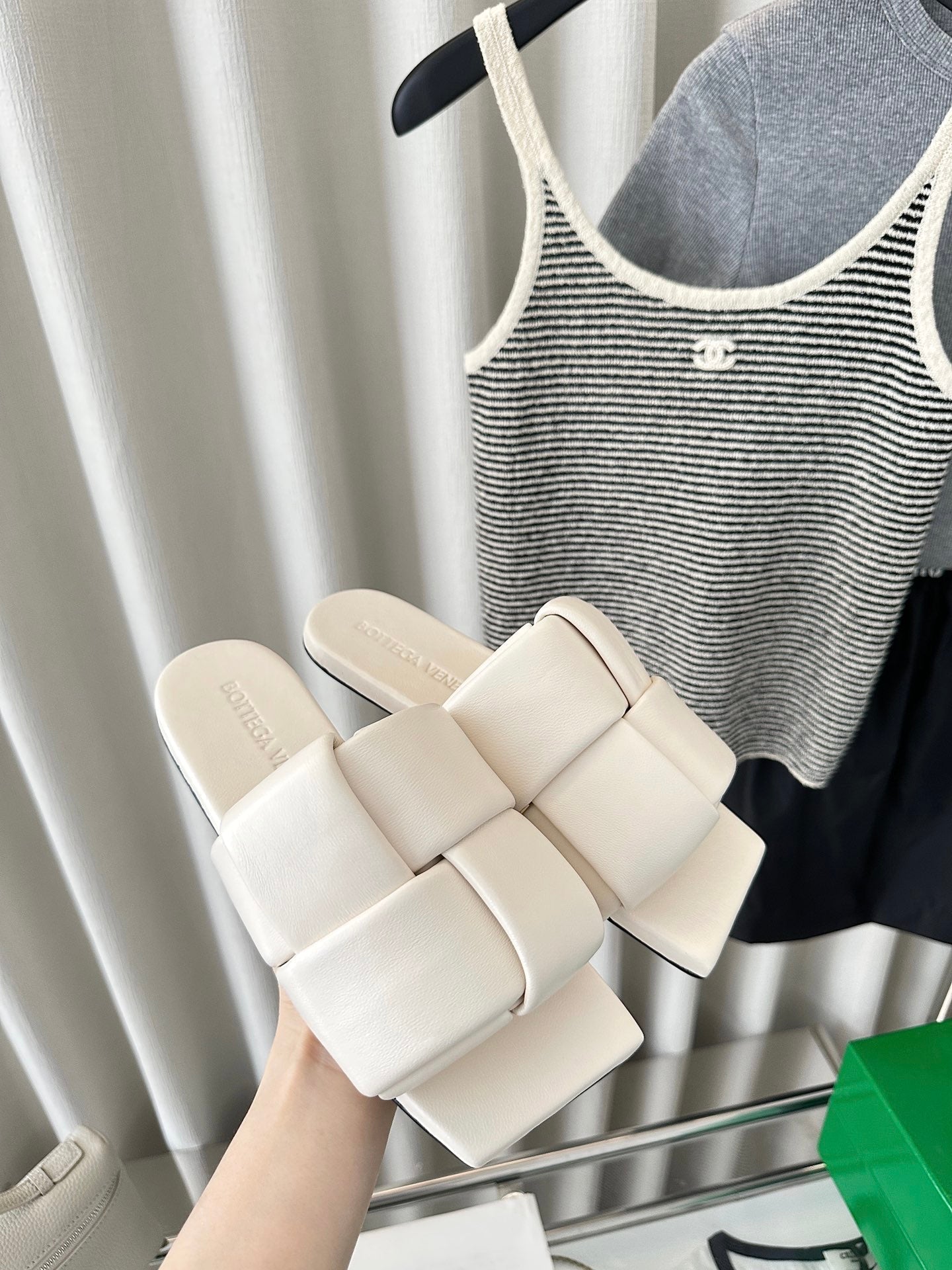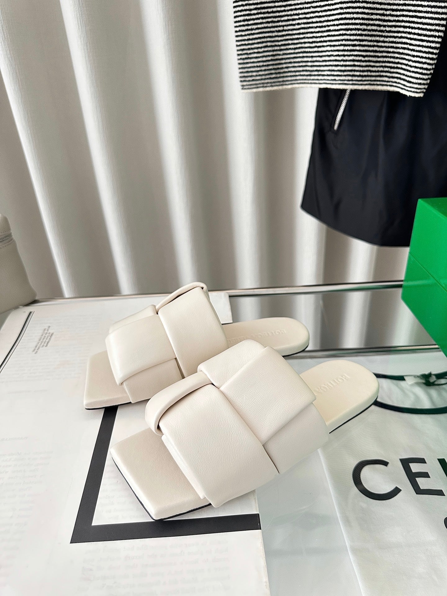 patch mule flat white lambskin