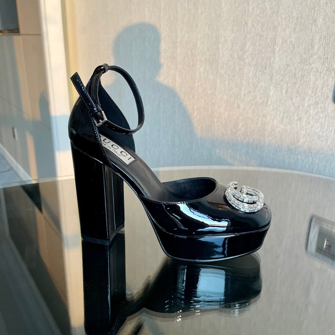 platform pump 12cm with double g black patent leather