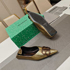 POINTED BALLET FLATS IN GOLD METALLIC SHINY CRACKED SHEEPSKIN