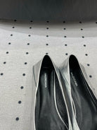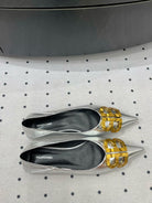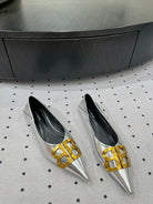 POINTED BB GOLD BUCKLE BALLET FLAT IN SILVER METALLIC SHINY CALFSKIN