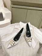 POINTED BB GOLD BUCKLE HIGH PUMPS 85MM IN WHITE PATENT CALFSKIN