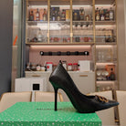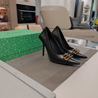 POINTED BB GOLD BUCKLE HIGH PUMPS IN BLACK CROCODILE PATTERN CALFSKIN