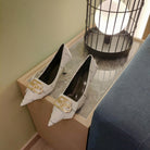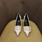 POINTED TOE PUMPS WHITE WITH LOGO PRINT SMOOTH CALFSKIN