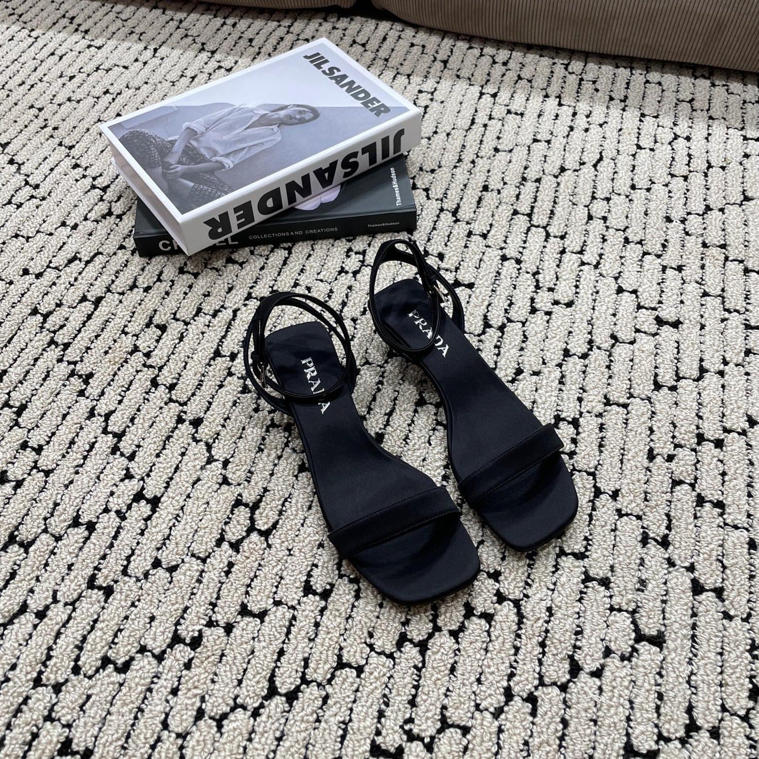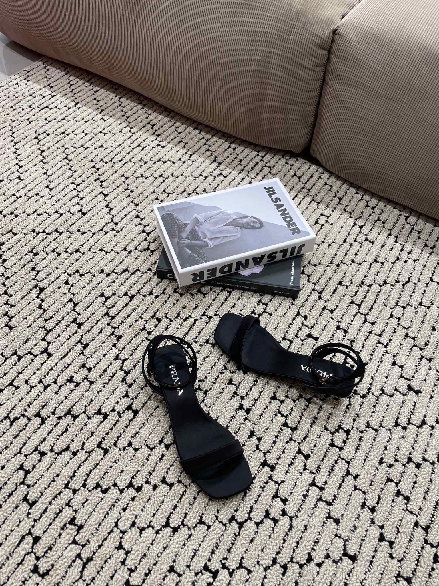 PRA TRIANGLE HEEL SATIN SANDALS BLACK
