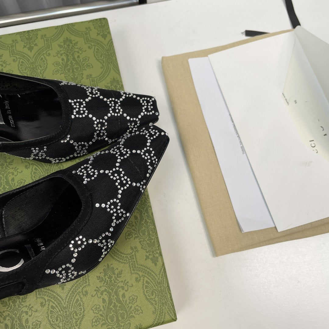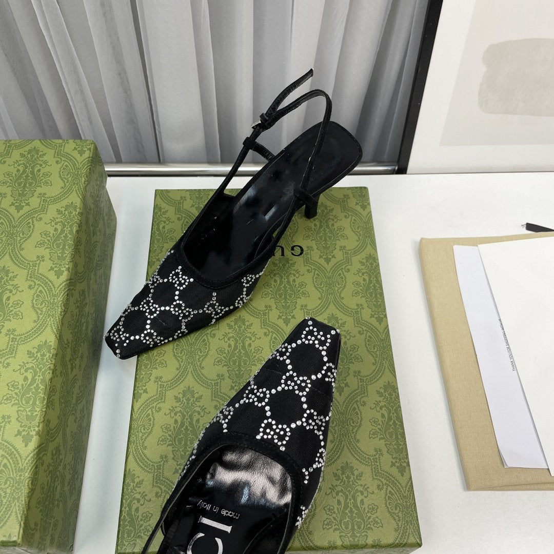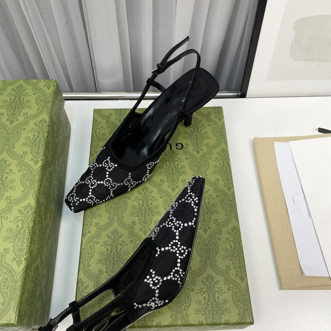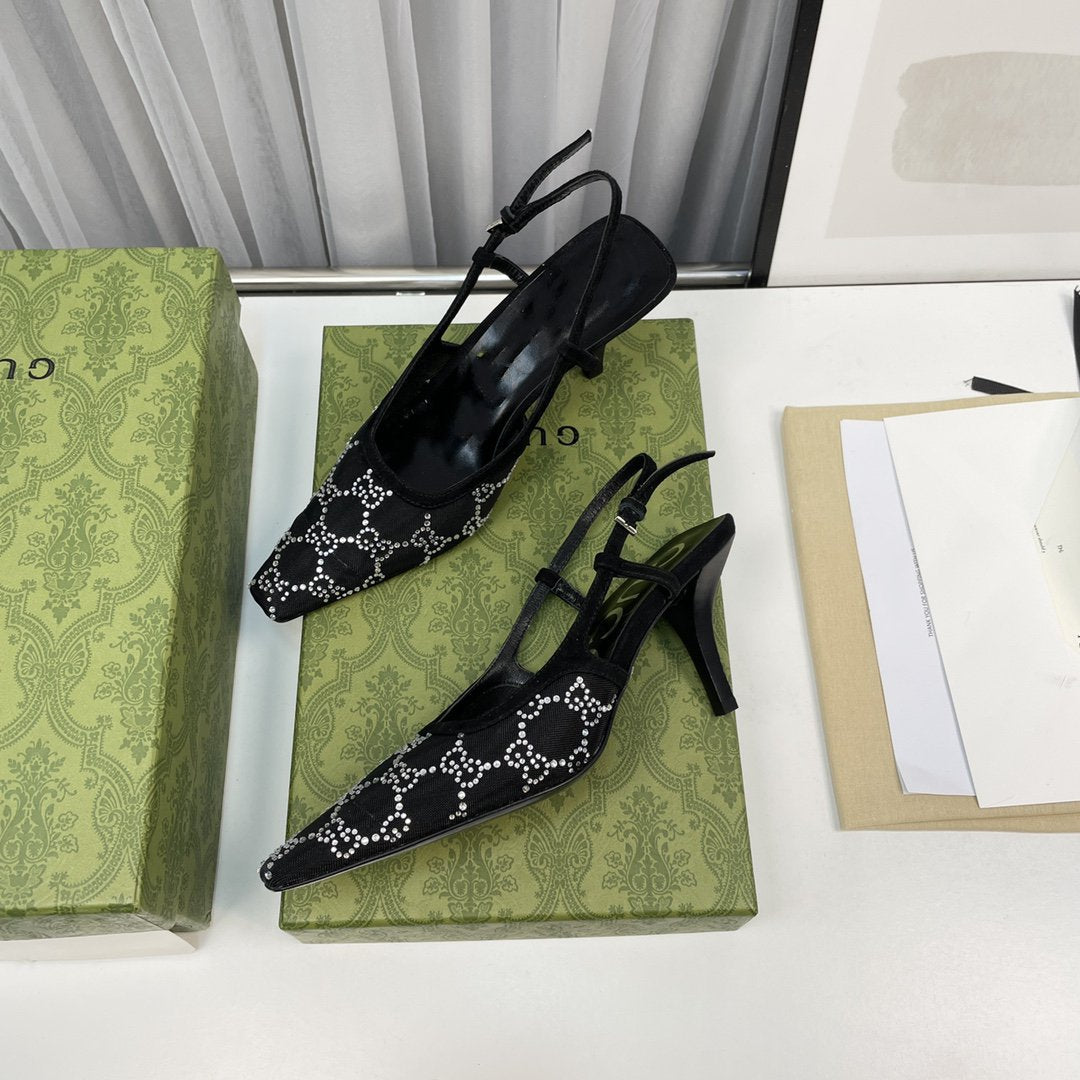 sling back pump 85 black mesh white crystal