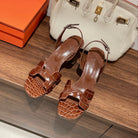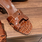 SLINGBACK ETERNITE 75 BROWN LAMBSKIN AND CROCODILE LEATHER