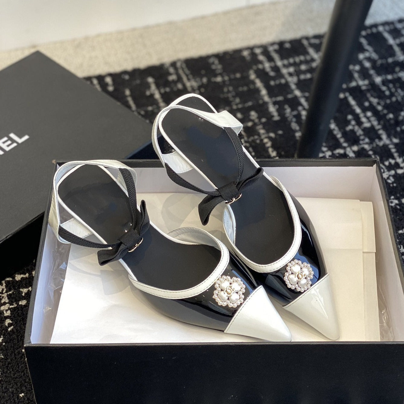 slingbacks 45 black white patent calfskin