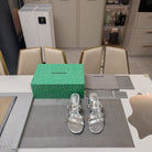 STRAPPY MEDIUM HEELED SANDALS IN SILVER STUDDED WAX-OIL SHEEPSKIN