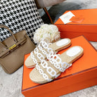 STRAW SOLE SLIPPERS WHITE LAMBSKIN