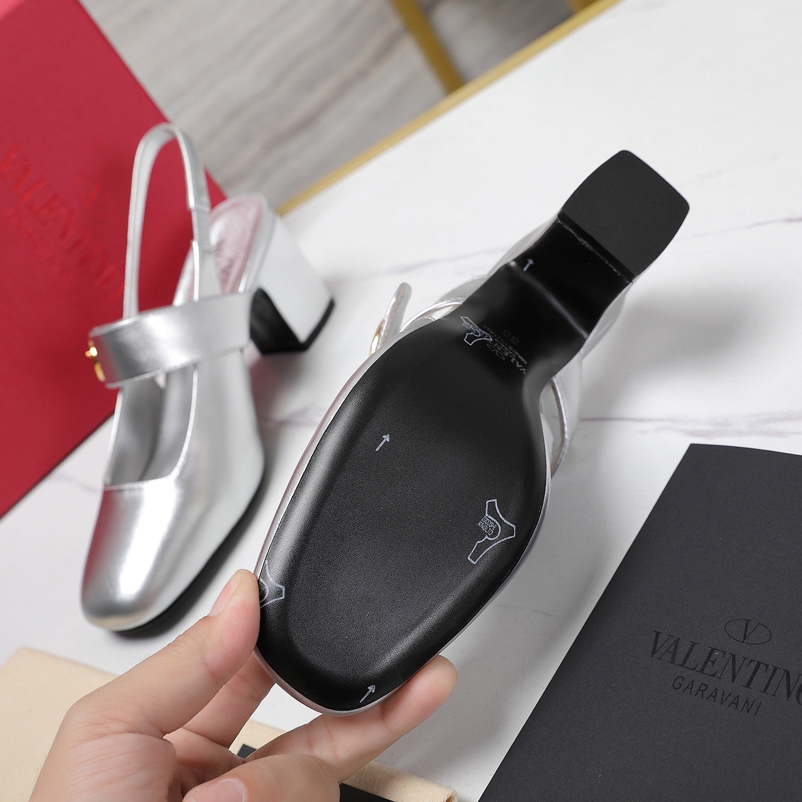 The Bold Edition Vlogo Slingback 65 Deep Mouth Half Drag Heels Silver Calfskin