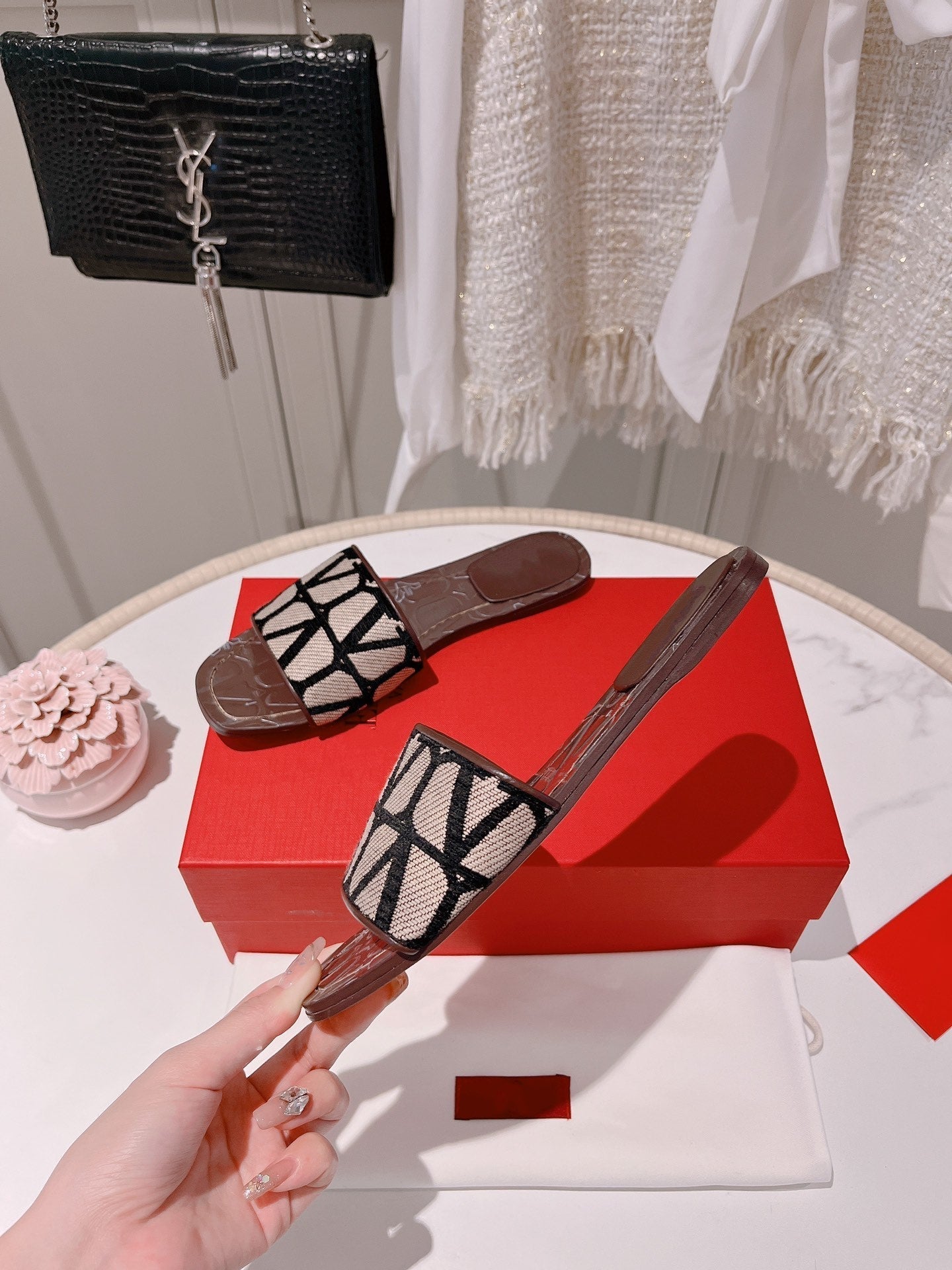 Toile Iconographe Slide Sandal Burgundy Black Beige