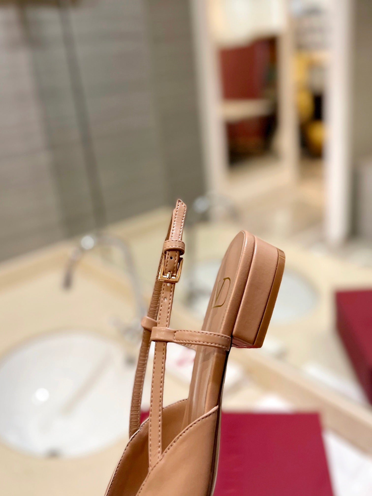 VLOGO BEIGE LEATHER SLINGBACK FLATS