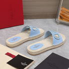 Vlogo Cut-Out Slide 20 Baby Blue Calfskin Beige Sole Raffia