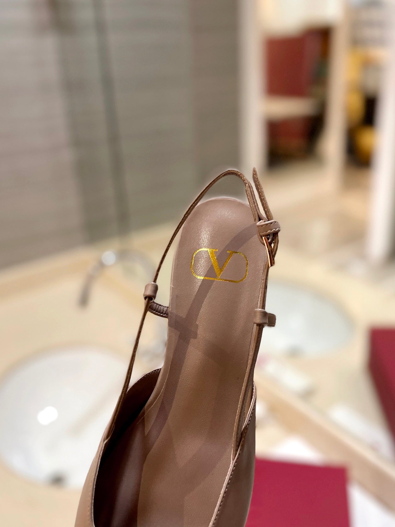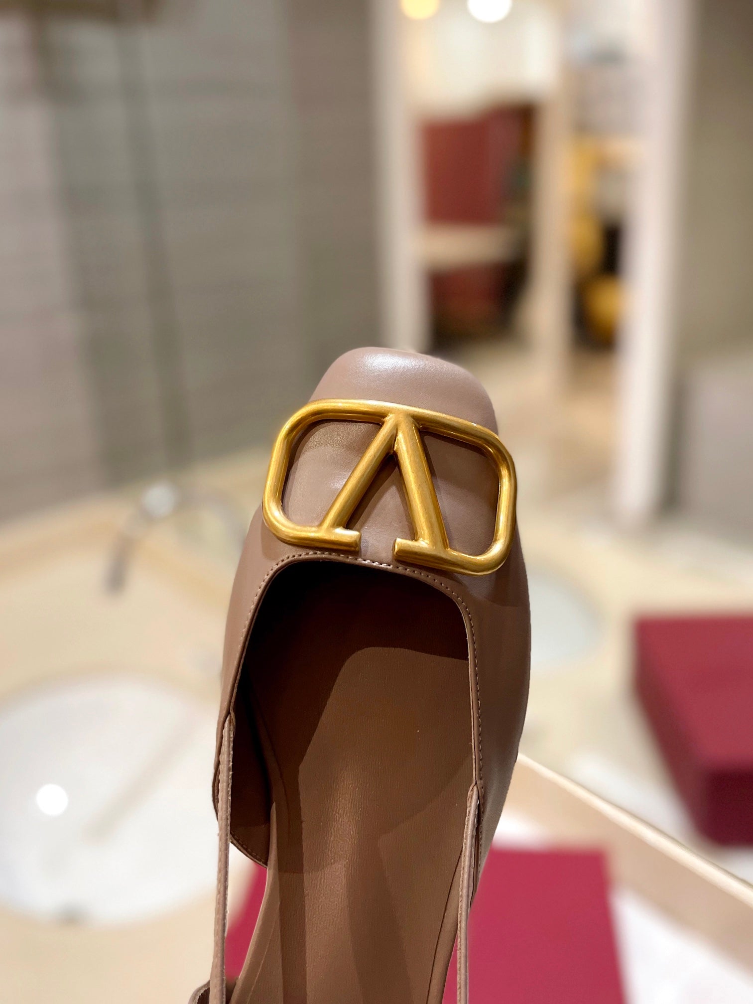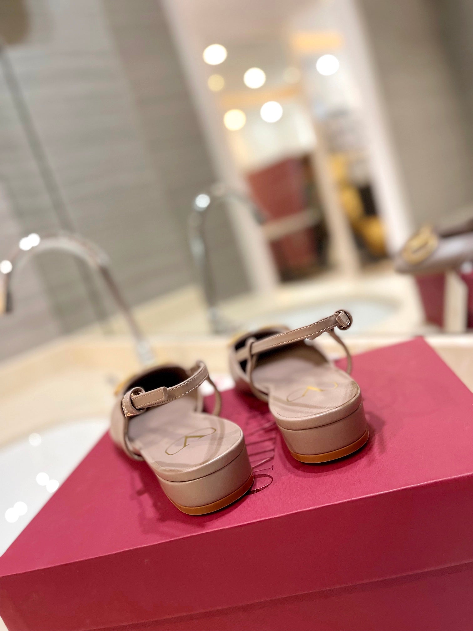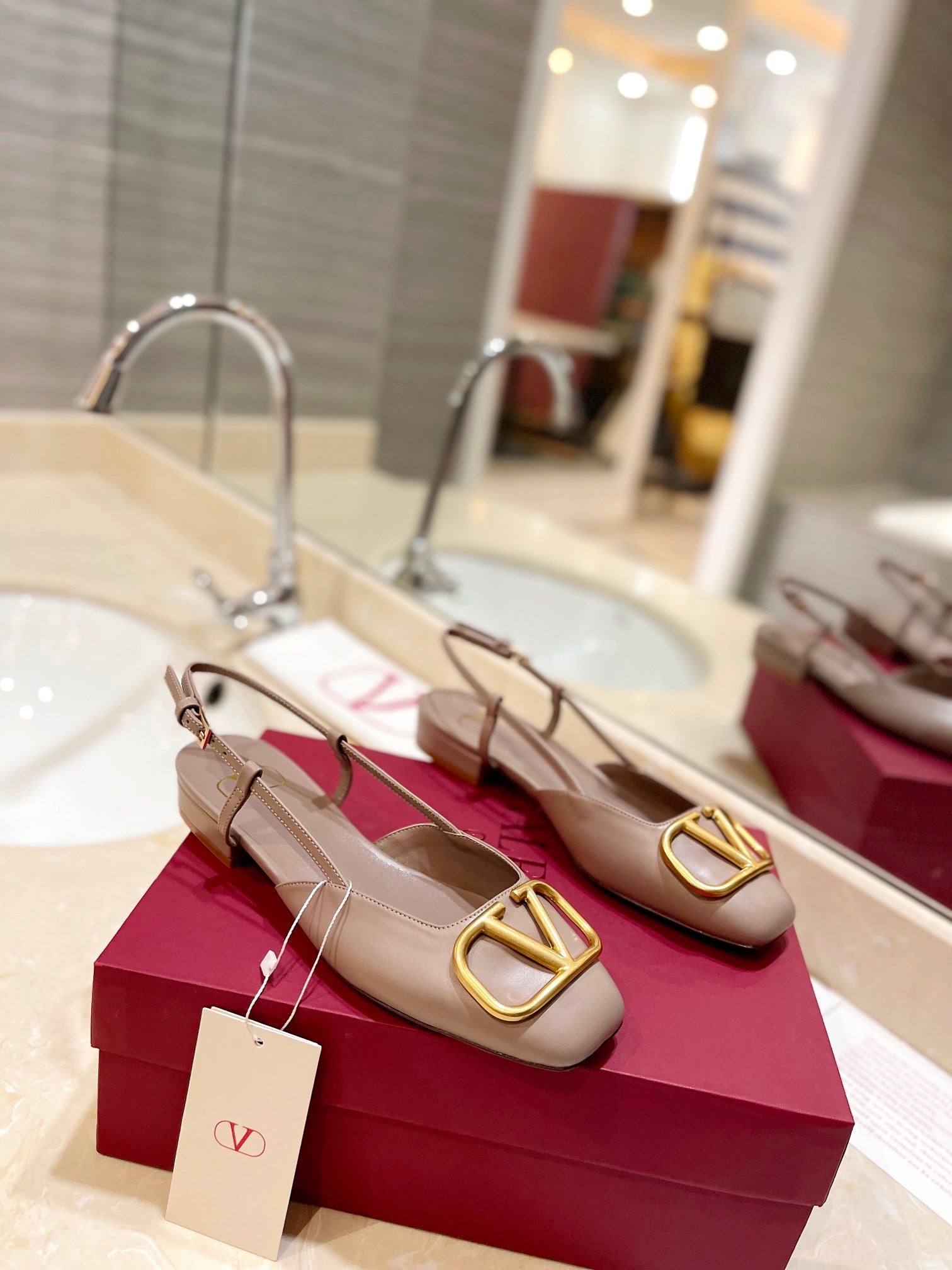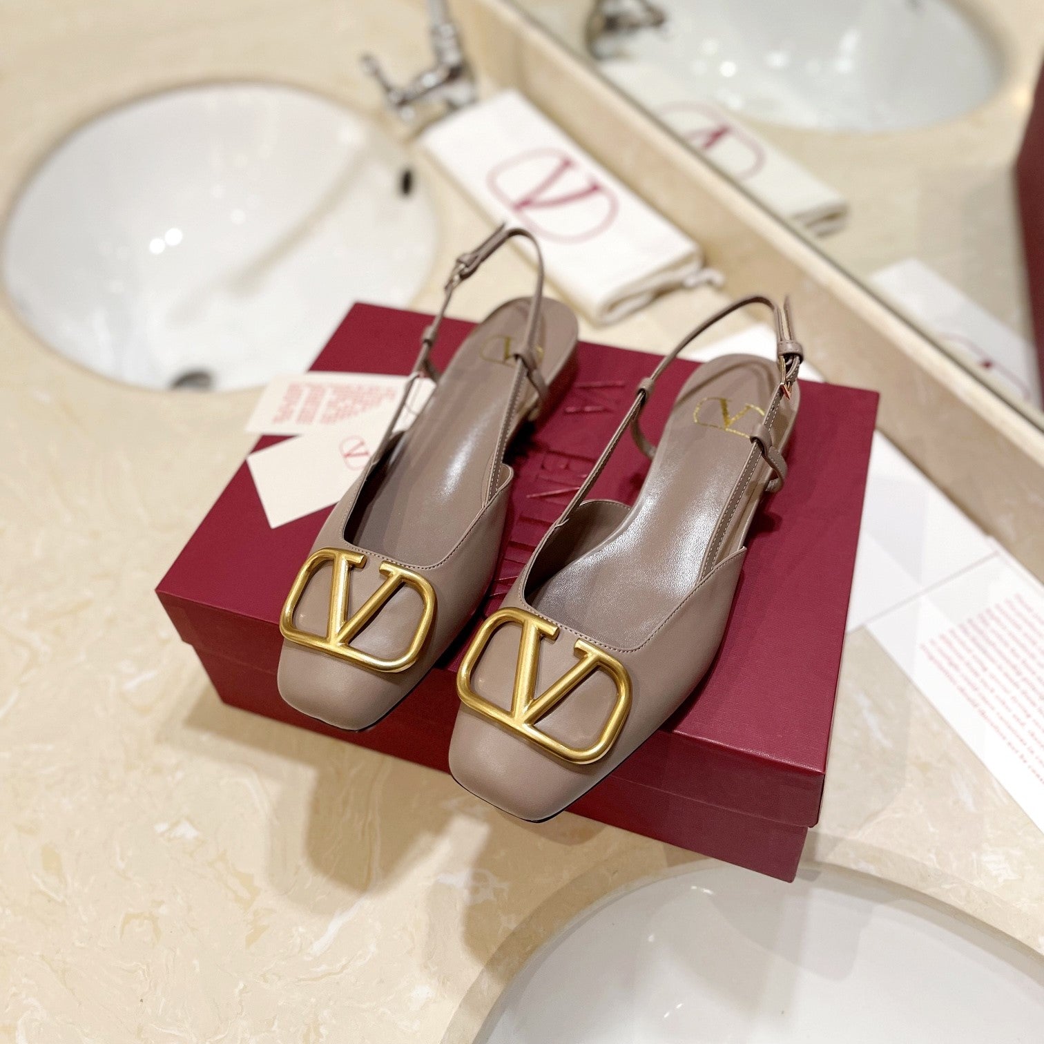 VLOGO ROSE CANNELLE LEATHER SLINGBACK FLATS