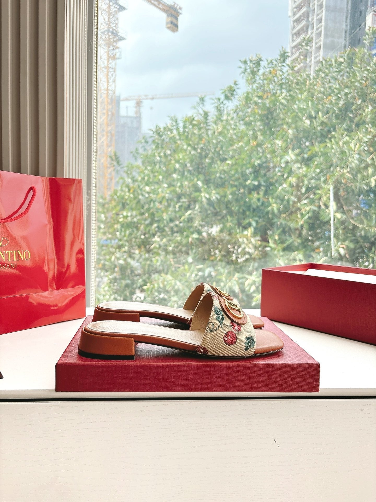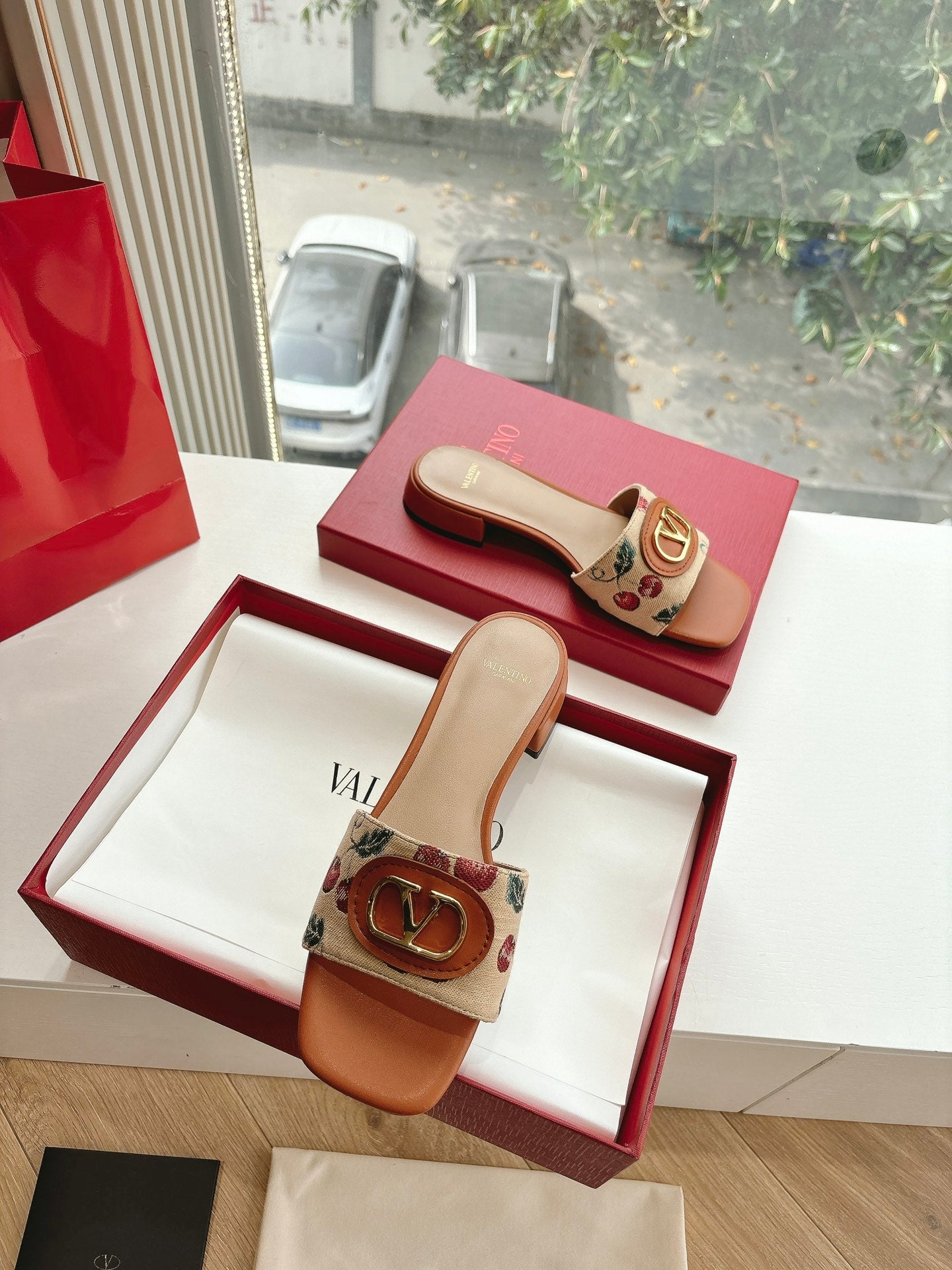 VT 2025 Cherryfic Leather Trimmed Slides Orange Sheepskin 286494