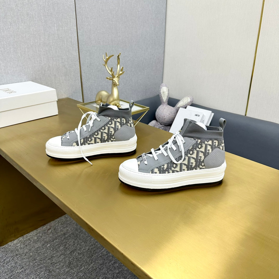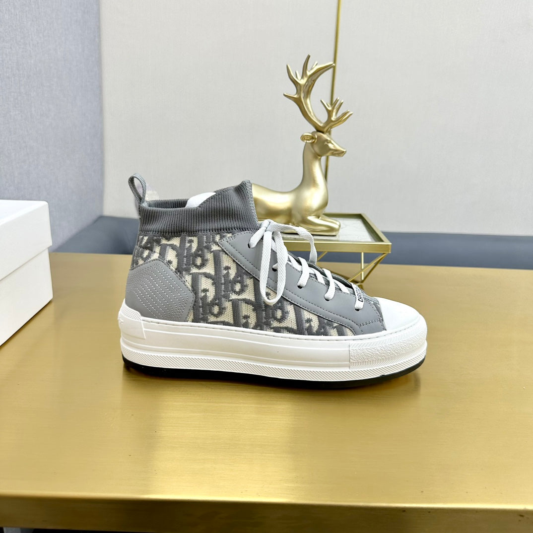 Walk'n'Dior Sneaker In Grey Mix Beige Monogram Wool And Cowhide 111929