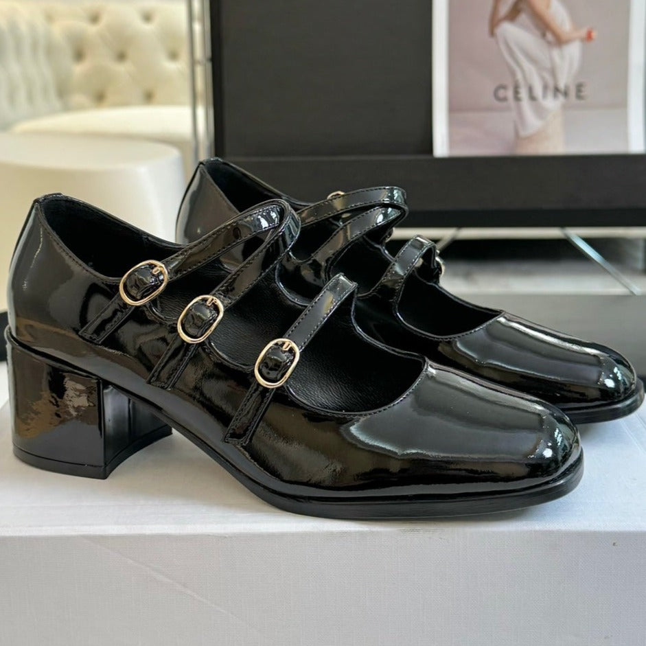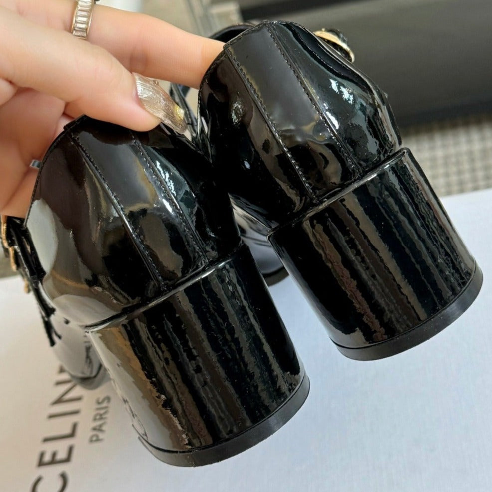 WOMEN'S SANDALS WITH ROUND TOE GLOSSY BLACK SPECIFIC COWHIDE