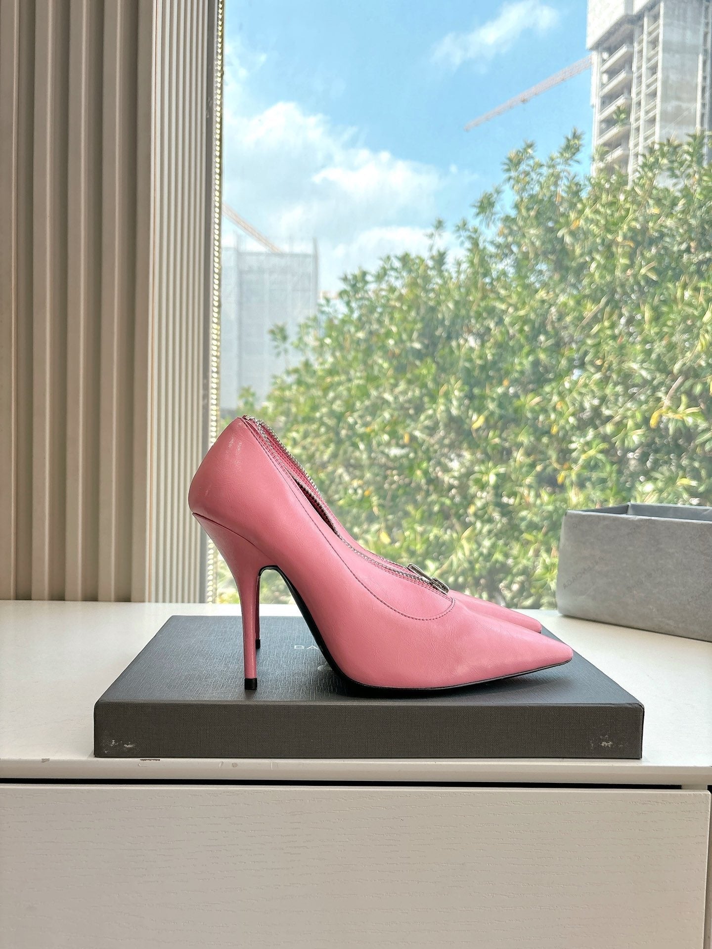 ZIPPER POINTED-TOE HIGH PUMPS IN BUBBLEGUM PINK SHINY LAMBSKIN