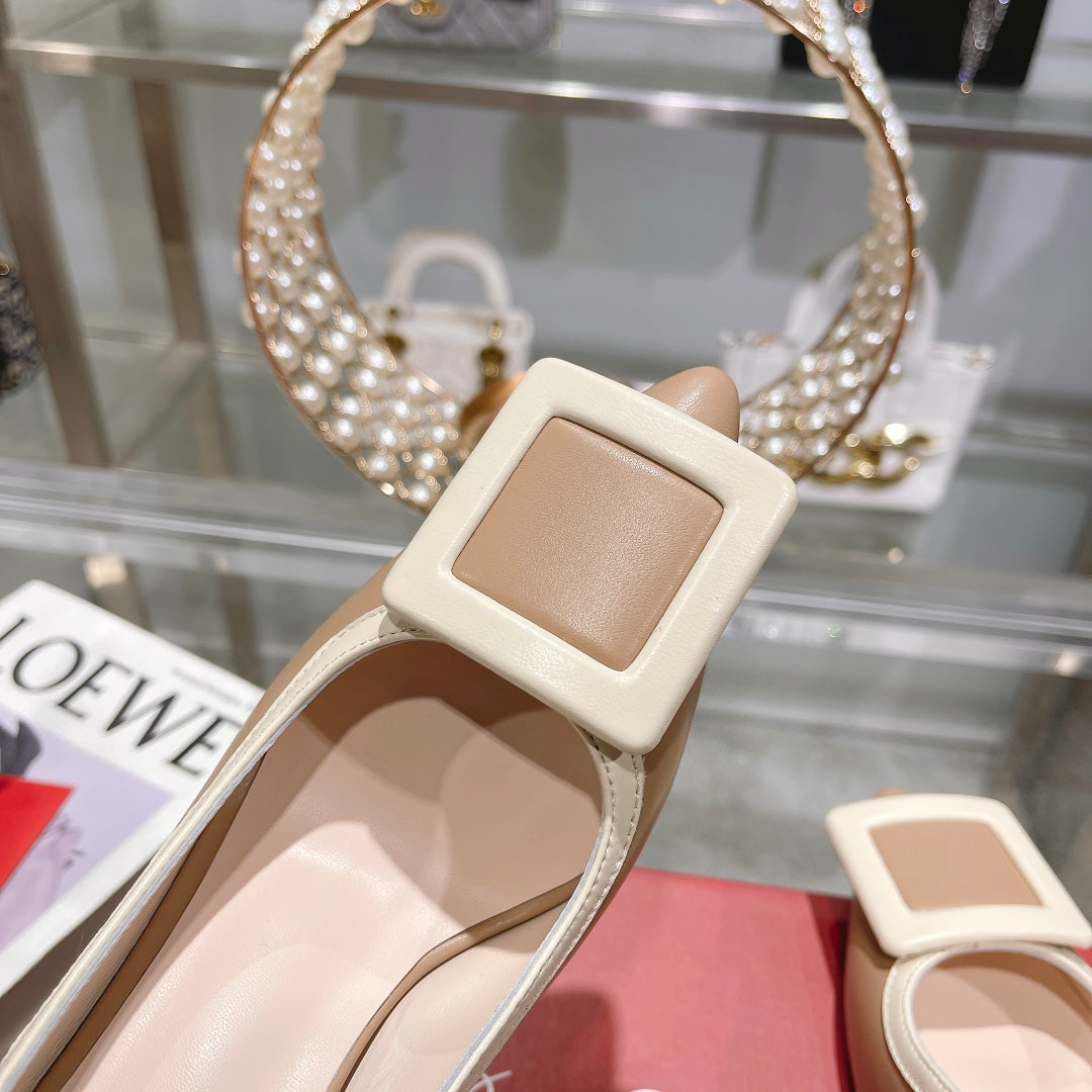 Belle Viv Metal Buckle Slingback Pumps 45 Transparent Camel Patent Leather