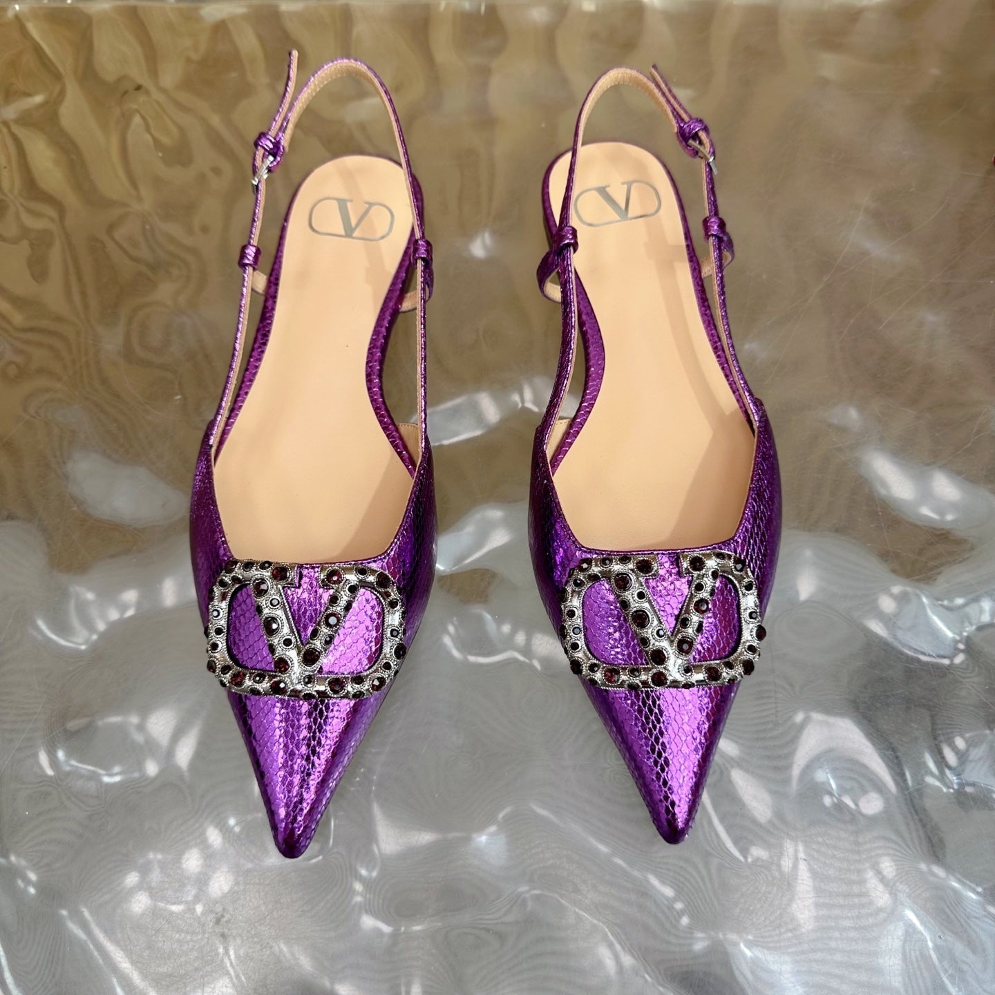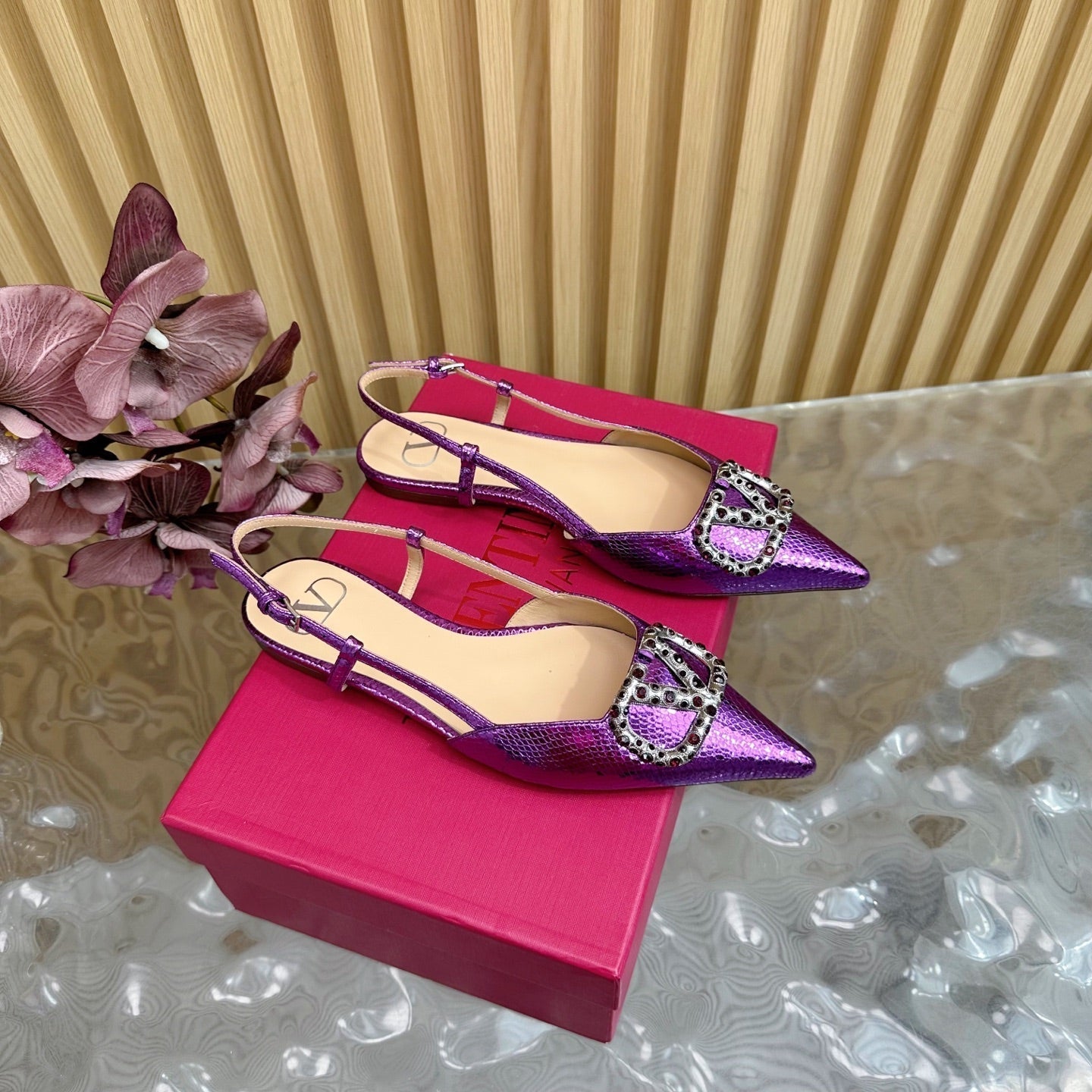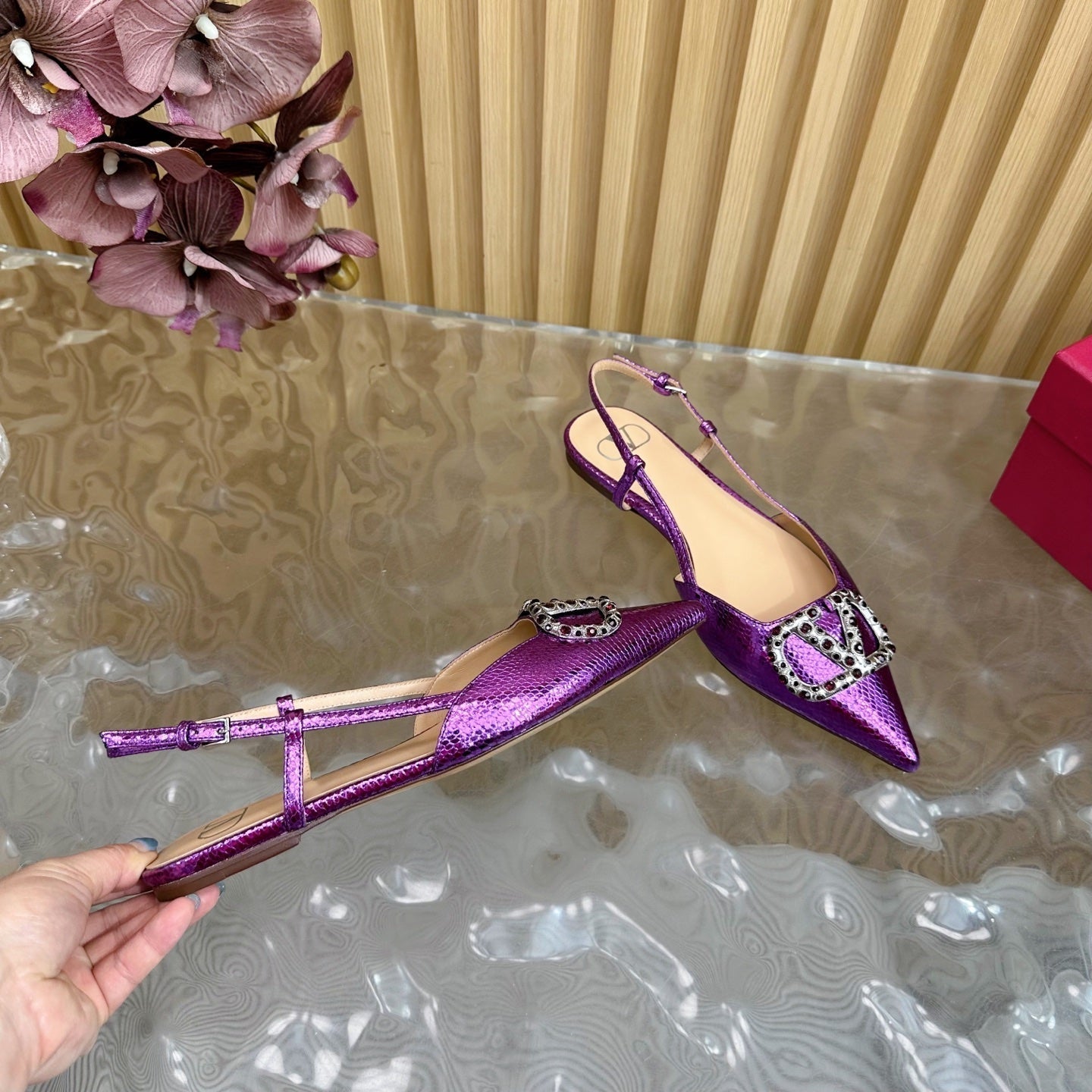 VT Slingback Flat Pink Snake-grain Leather 331936
