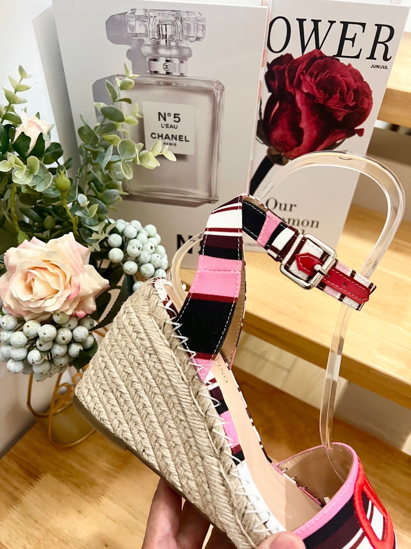 Valentino Wedge Sandals Multicolor Canvas 240576