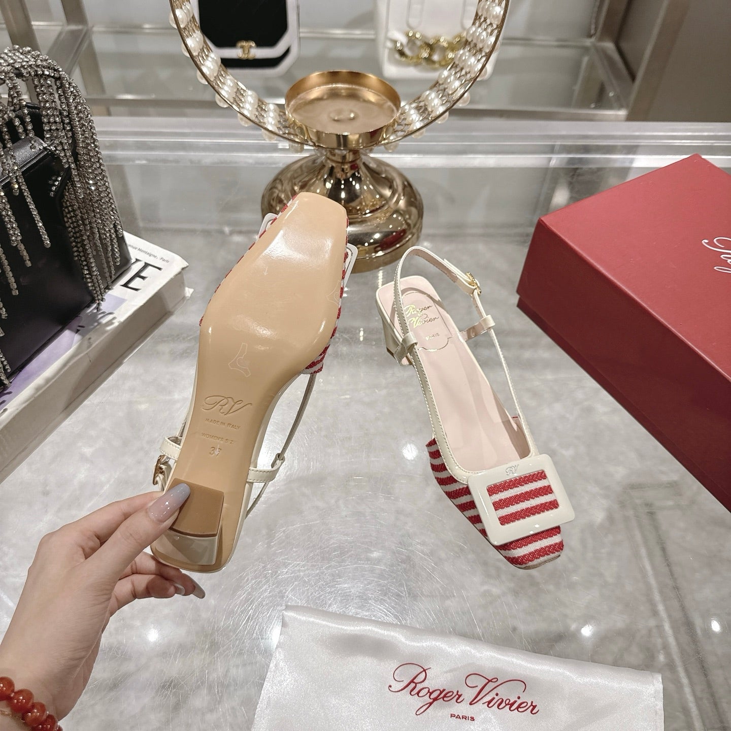 cd slingback pump 65 embroidered cotton white calfskin resin pearl