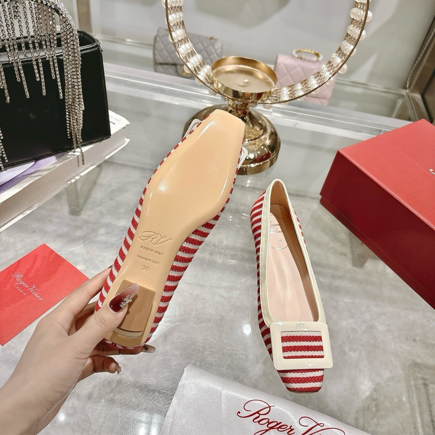 CL Kate 10cm Pumps Beige Red Calfskin
