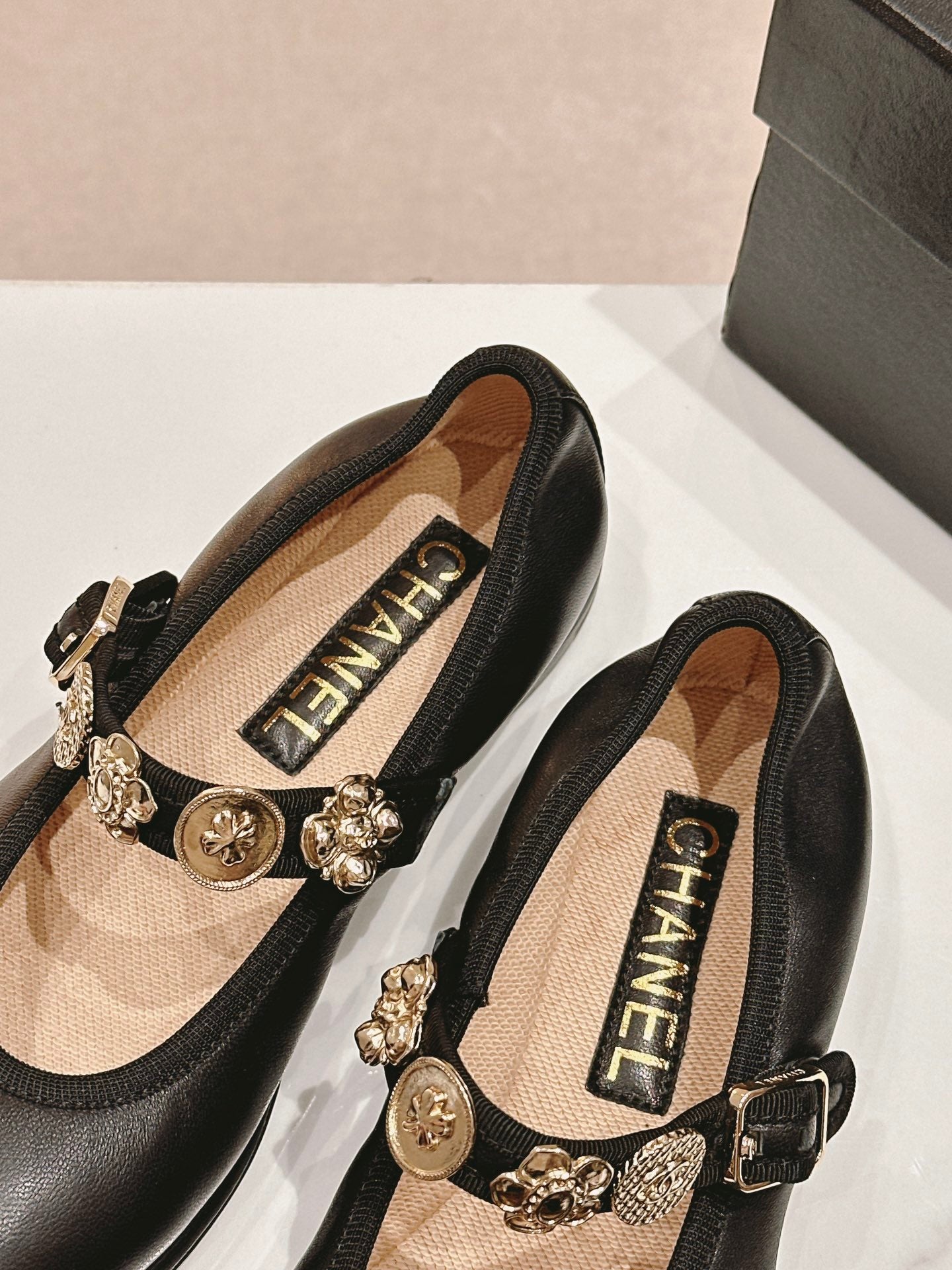 CC MARY JANES BLACK CALFSKIN LIGHT GOLD METALIC