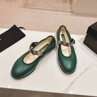CC MARY JANES GREEN CALFSKIN LIGHT GOLD METALIC