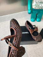 CC MARY JANES SHOES IN UMBER BROWN SATIN WITH RHINESTONES