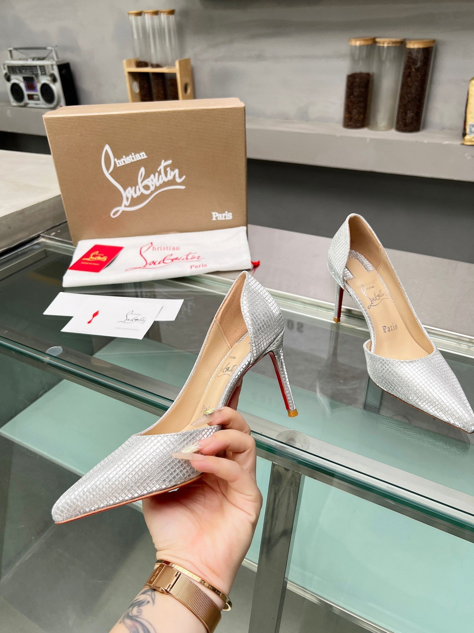 Cl Iriza 85mm Pumps Sequin Fabric Silver