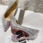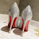 CL Kate Strass Degrade Pumps 100mm Suede Silver