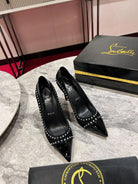 CL Women Pumps Crystals Embellished Patent And Sued Leather Black