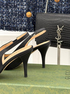GG Horsebit Slingback 85MM Black Leather Point Toe