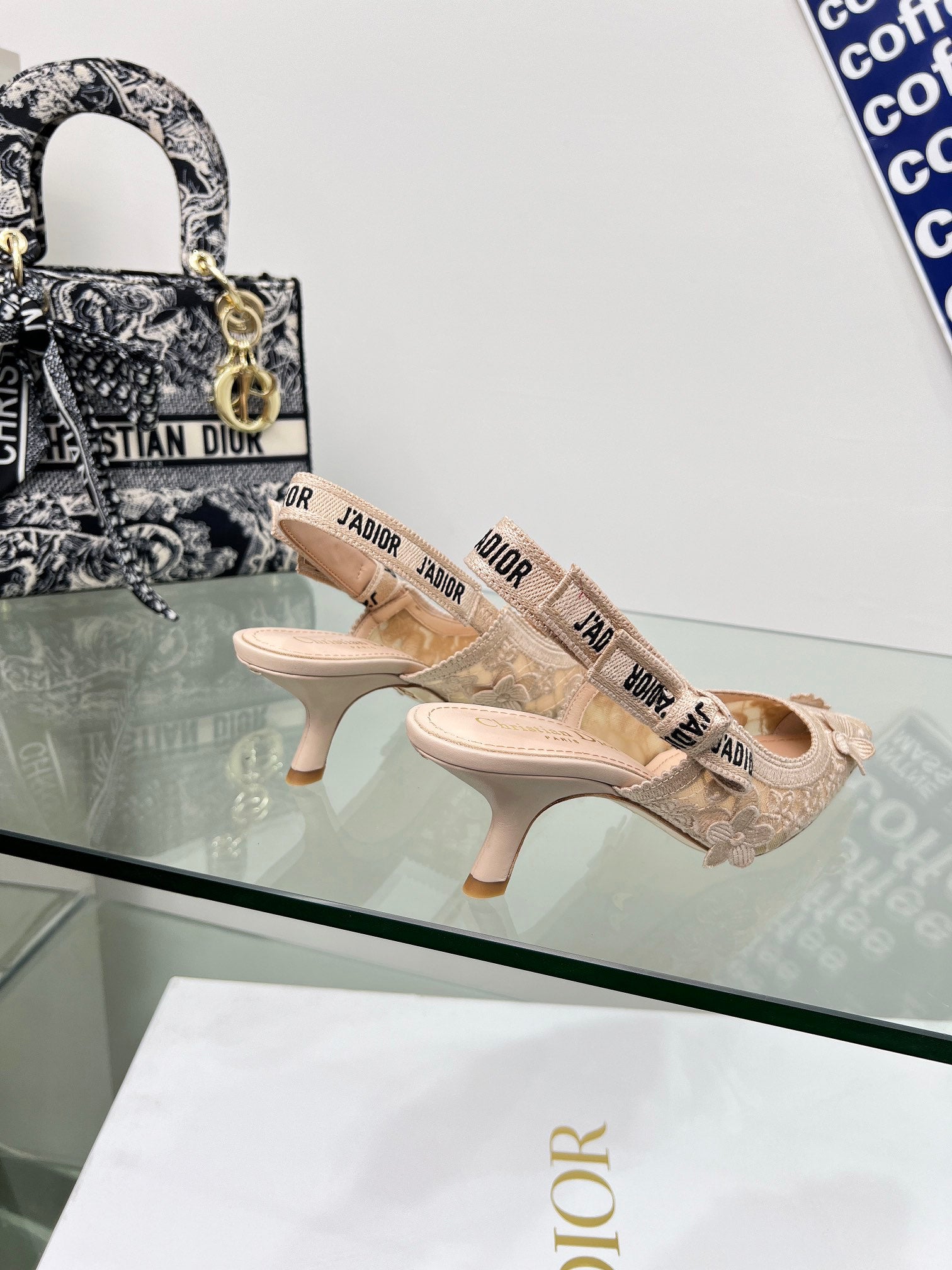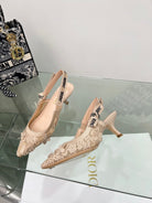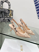 J'Adior Slingback Pump 65mm In Beige Floral Embroidered Lace Fabric 100841