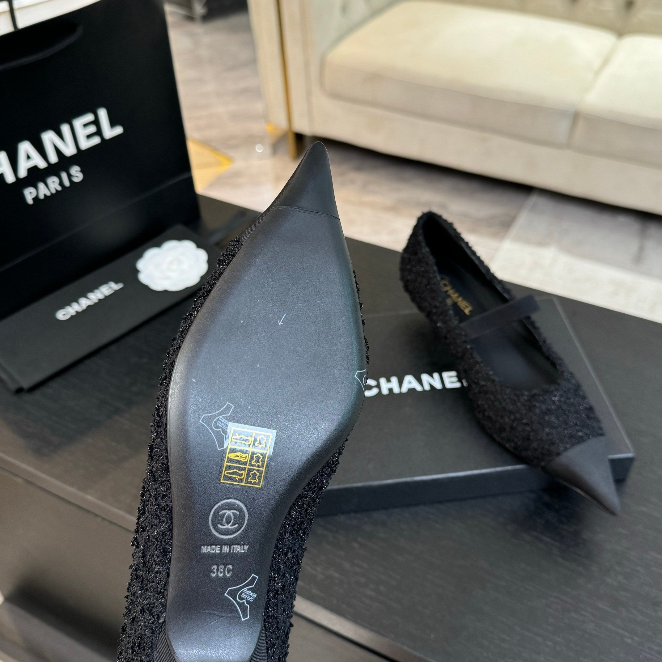 mary jane 35 pointed toe black tweed black grosgrain