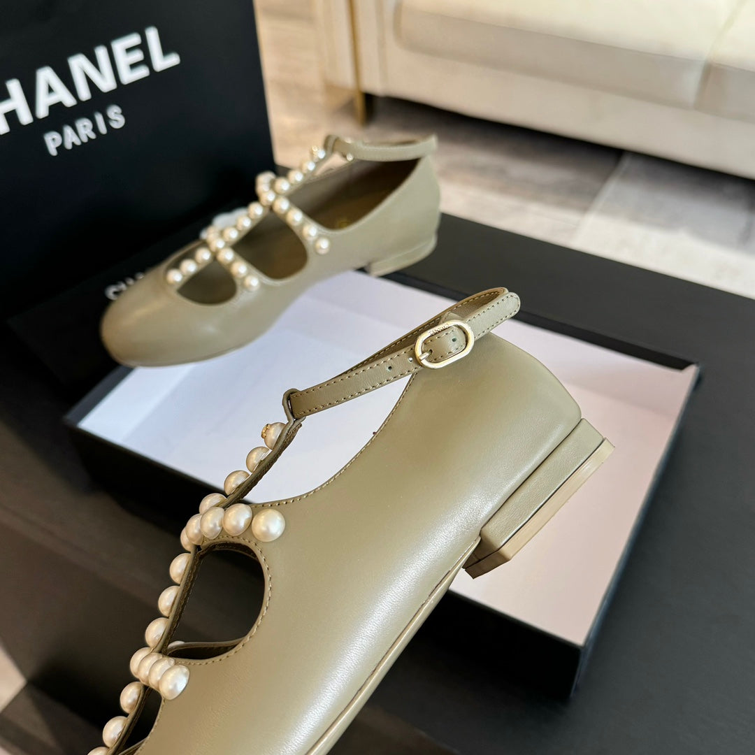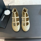 MARY JANES SHOES EICRU BEIGE GOATSKIN WITH FAUX PEARL