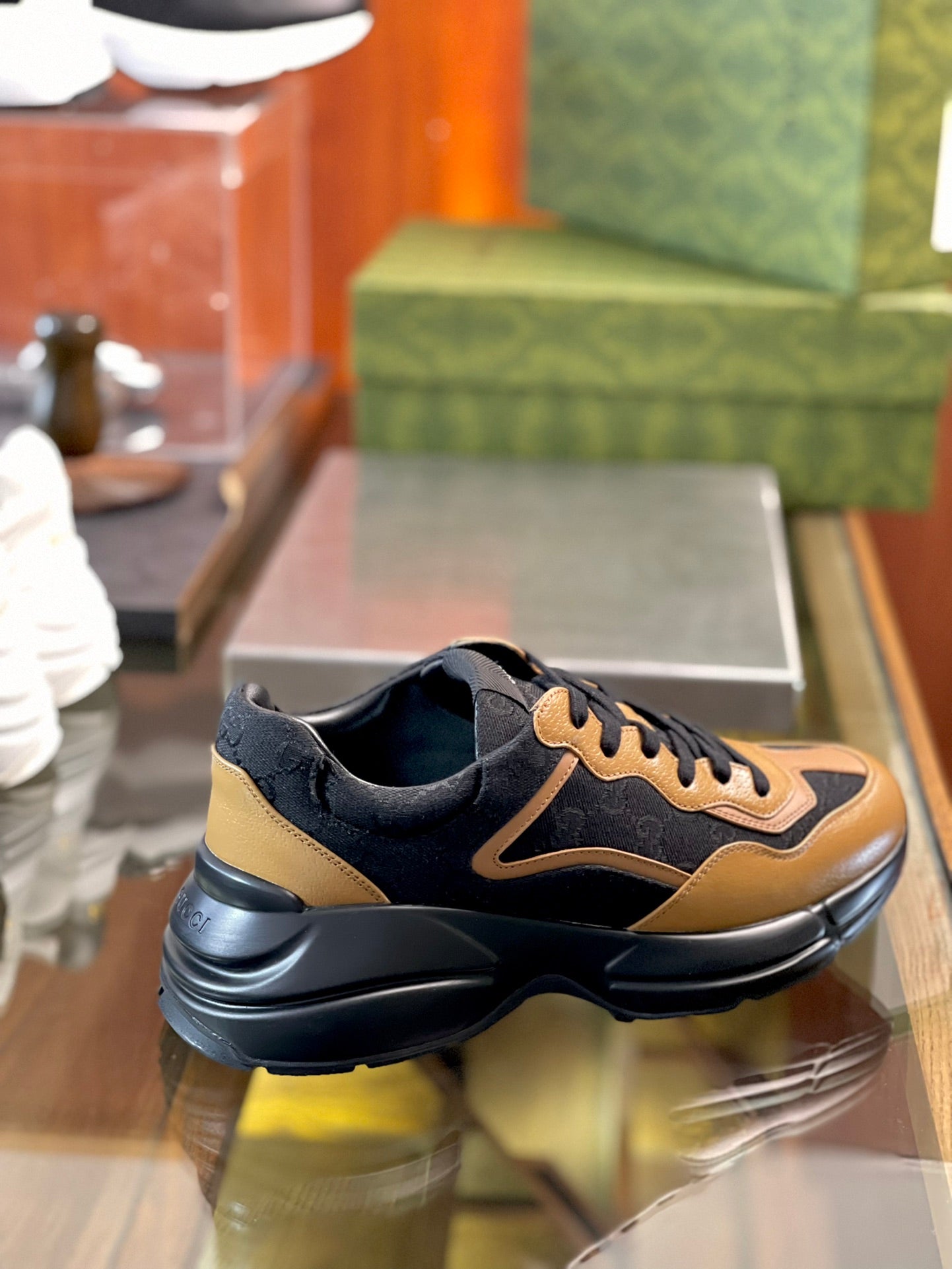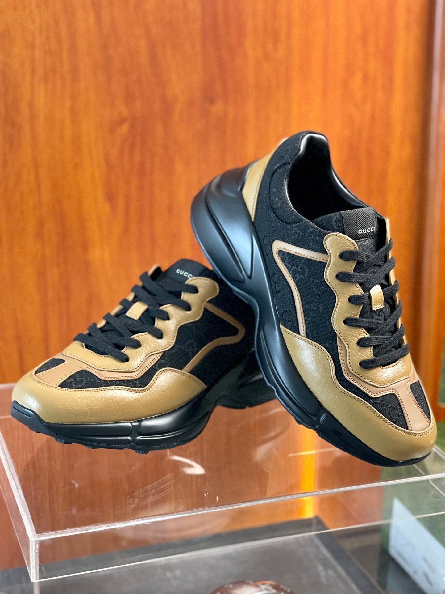 GG Men's Rhyton Sneaker Technical Knit Cowhide 524507