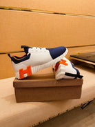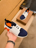 HM Men's Depart Slip-on Sneaker White Blue Knit Cowhide 263681