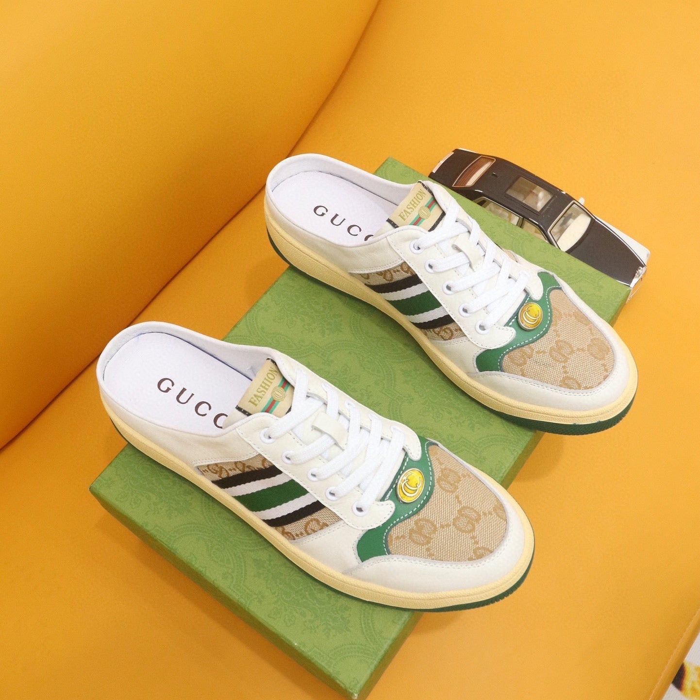 GG Men's Sneaker White Green Cowhide 522946