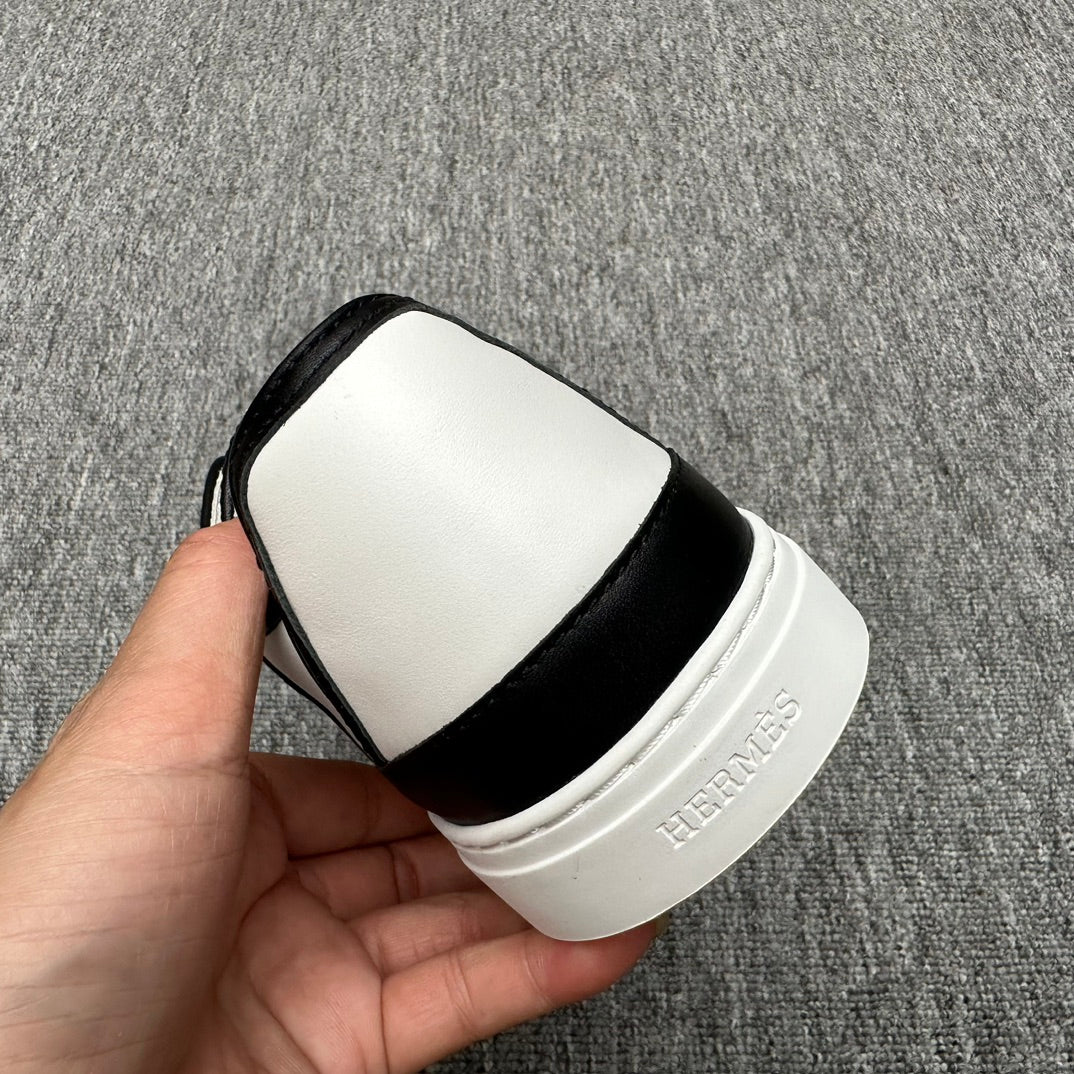 HM Men's Bouncing Sneaker White Black Calfskin Suede 696022